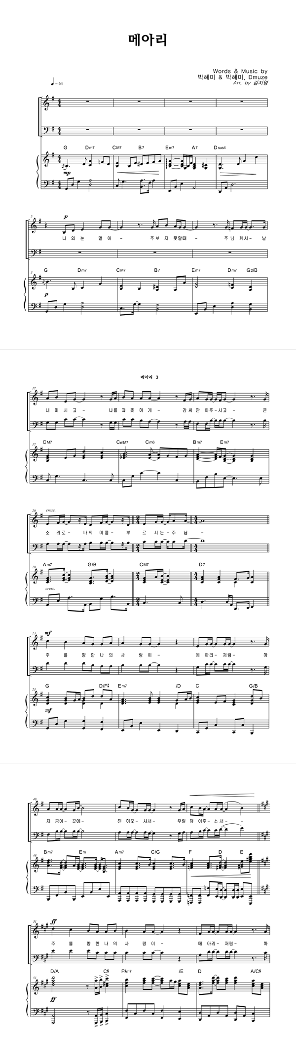 | 메아리 | 성가 4부 + 피아노 반주 |