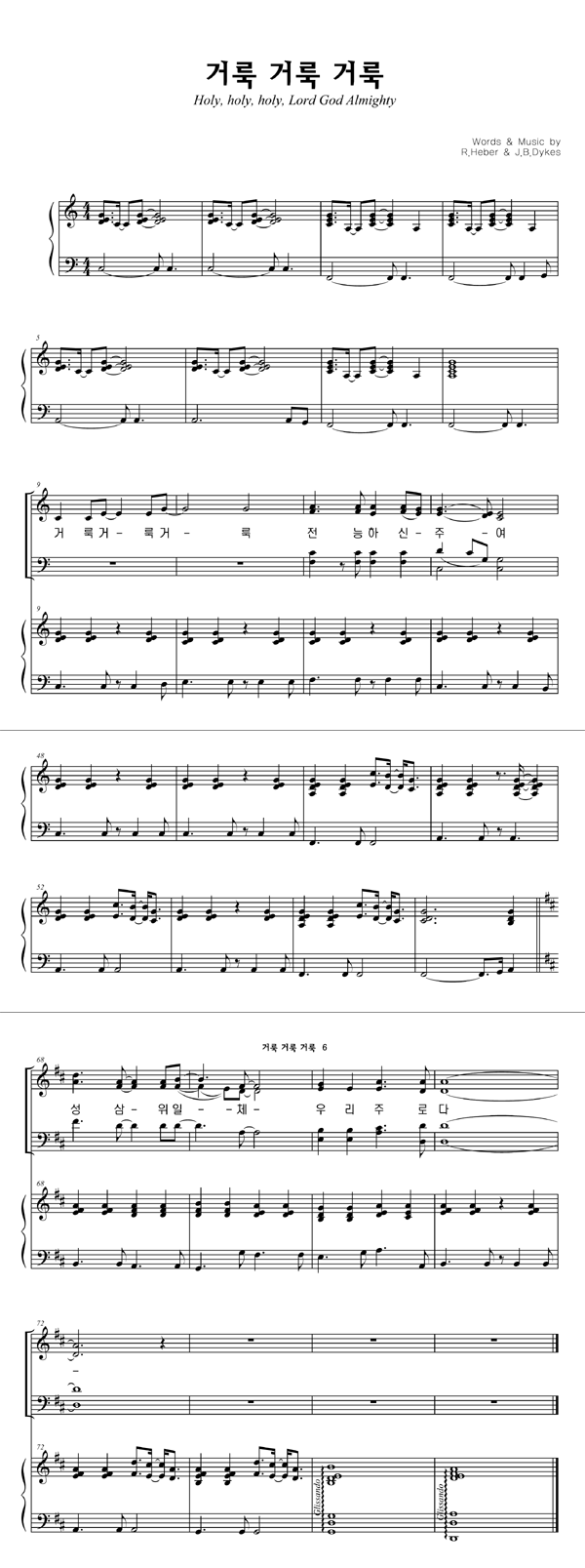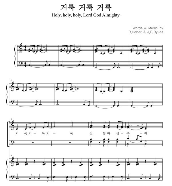| 거룩 거룩 거룩 | 성가 4부 + 피아노 반주 |