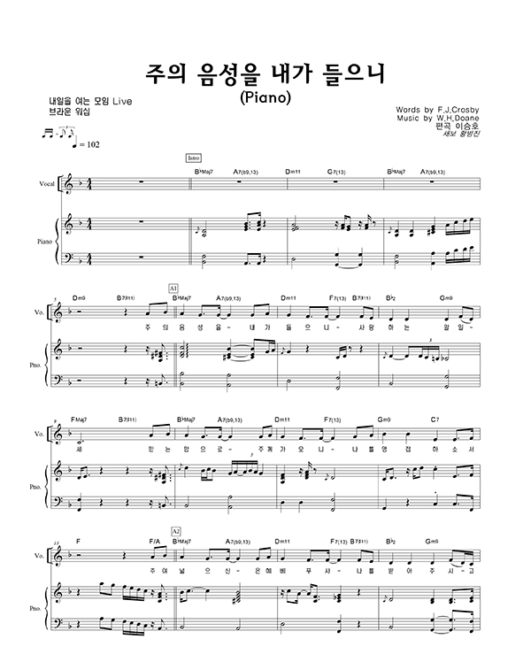| 내 이름 아시죠 | 성가 2부 + 피아노 반주 |