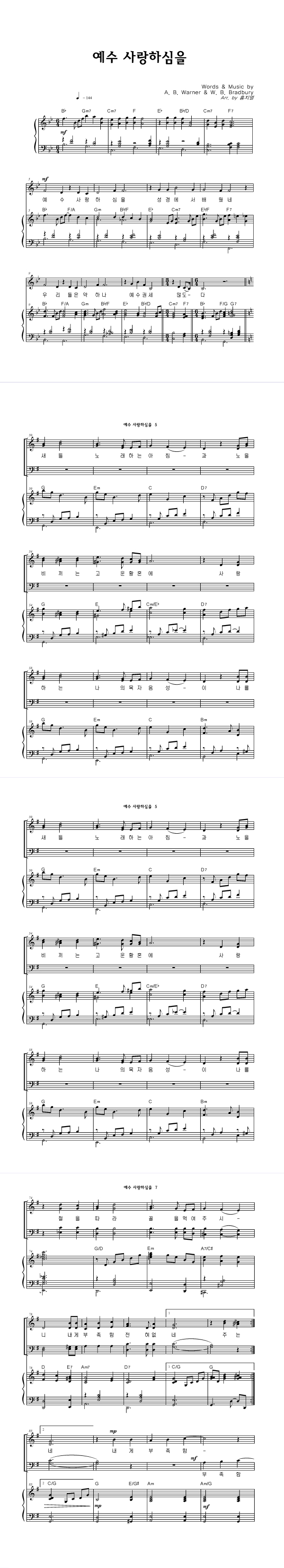 | 예수 사랑하심을 | 성가 3부 + 피아노 반주 |