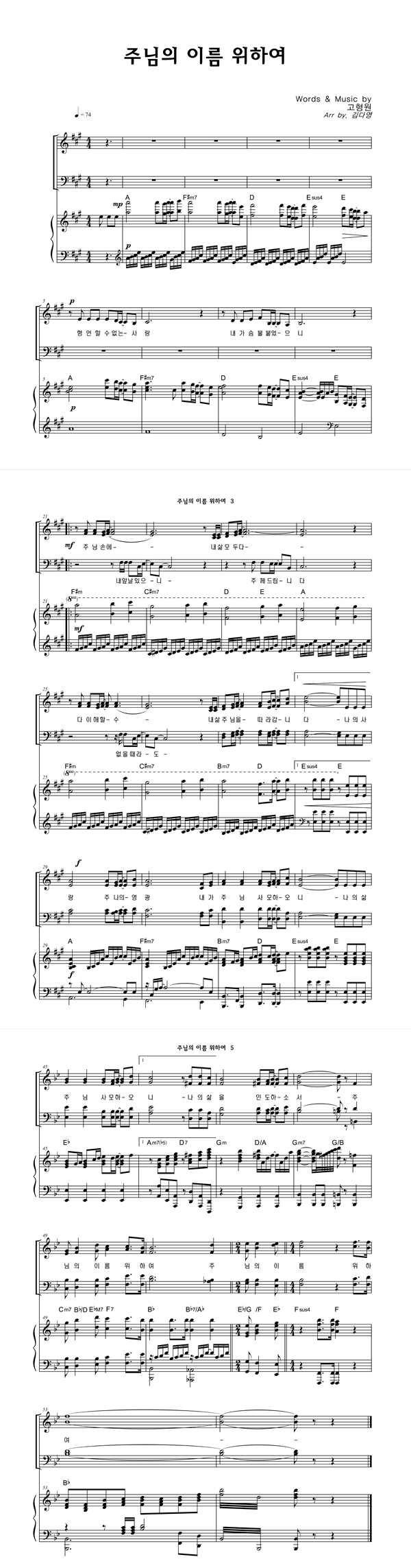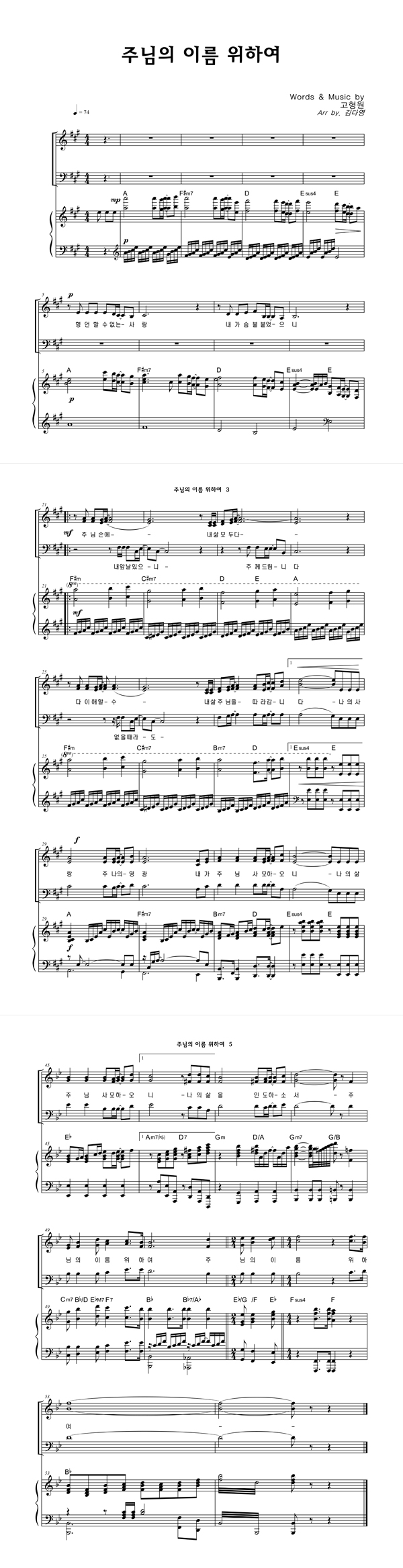 | 주님의 이름 위하여 | 성가 3부 + 피아노 반주 |