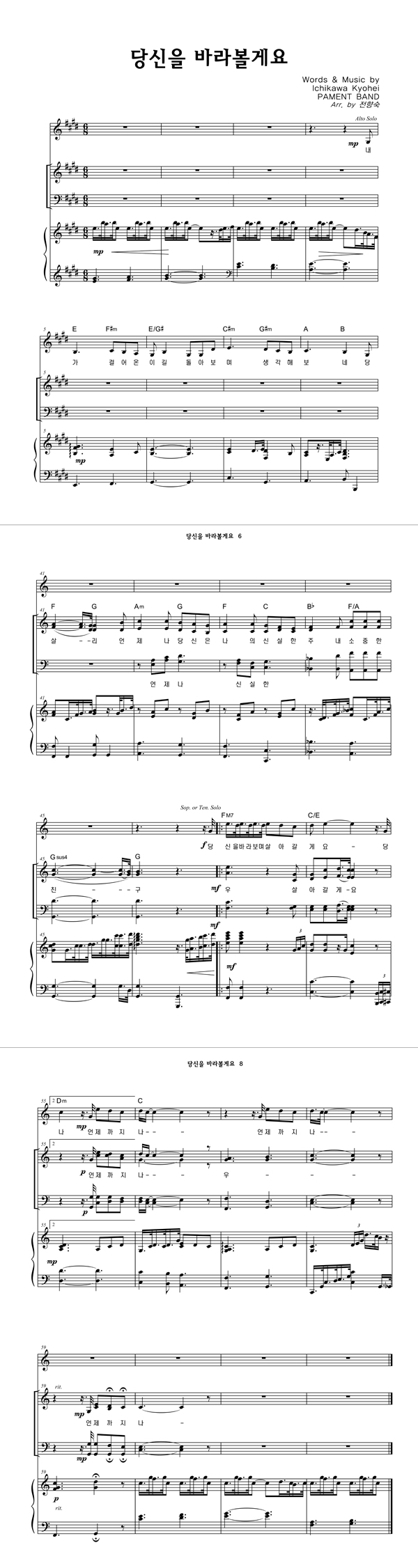 | 당신을 바라볼께요 | 성가 2부 + 피아노 반주 |