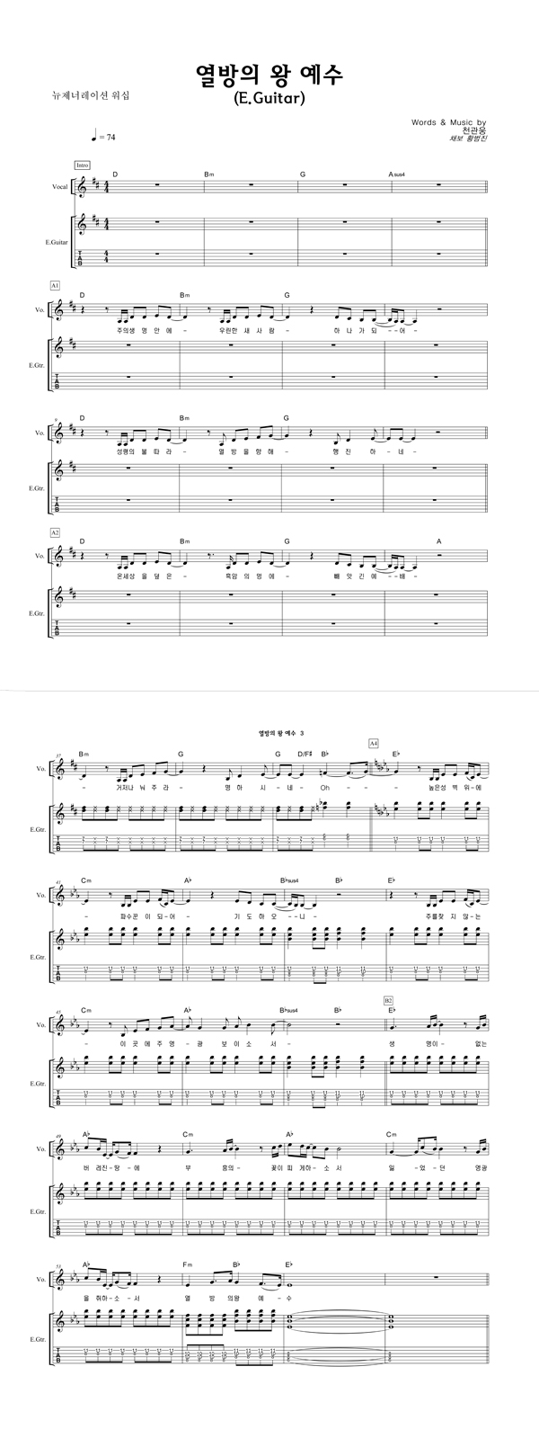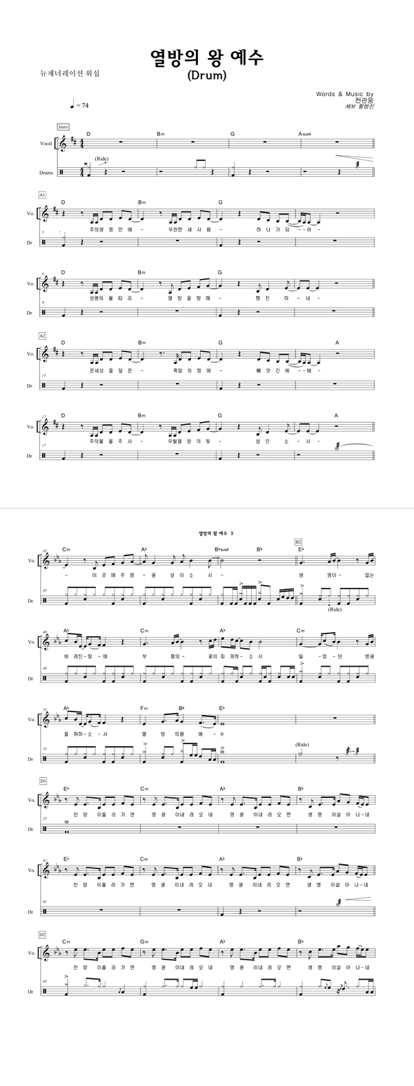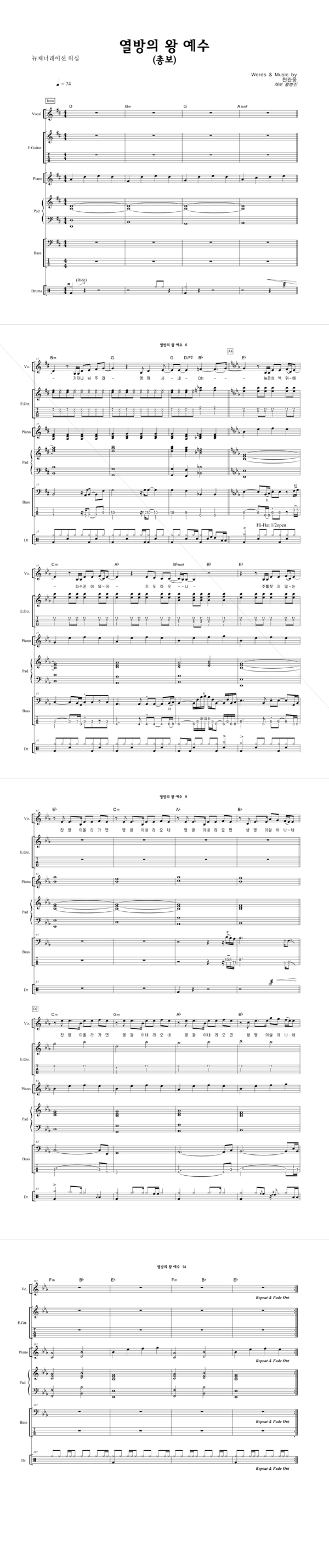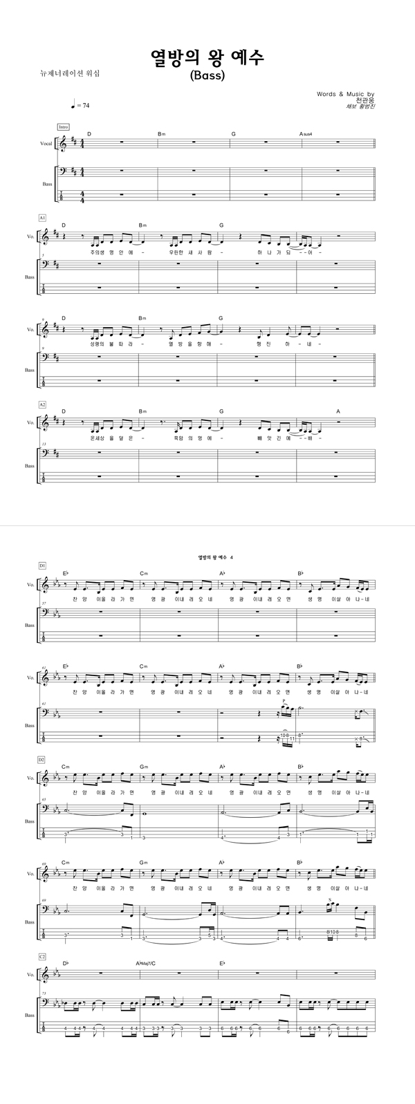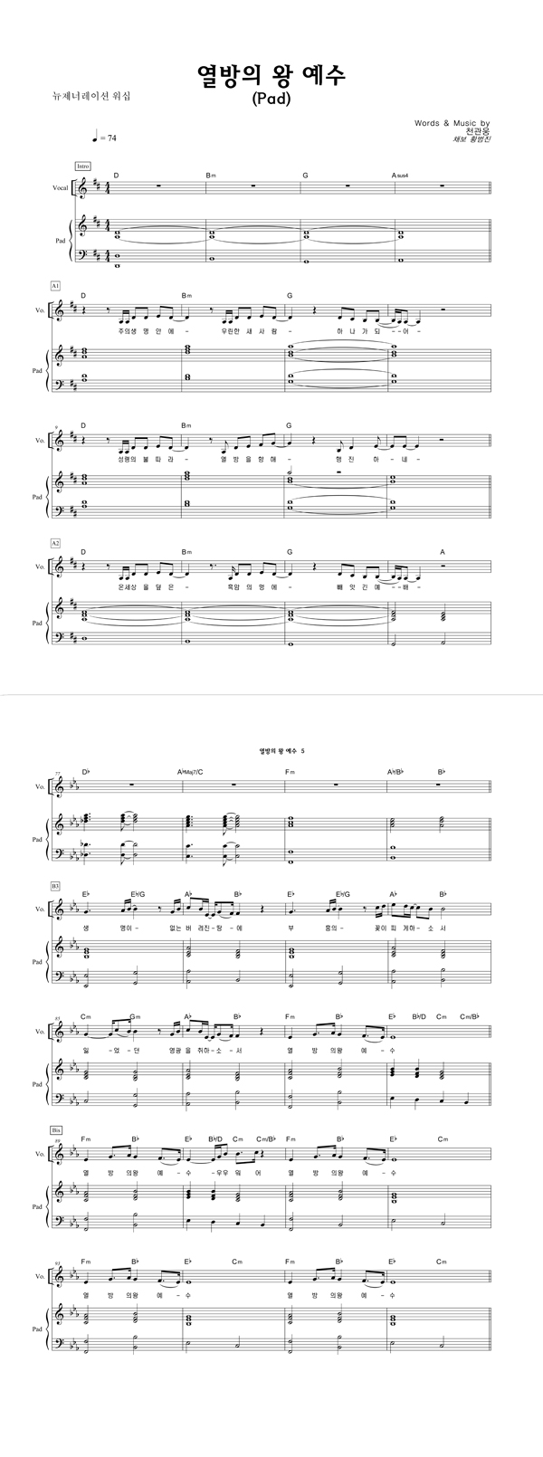 '열방의 왕 예수' 의 다른 악보형식