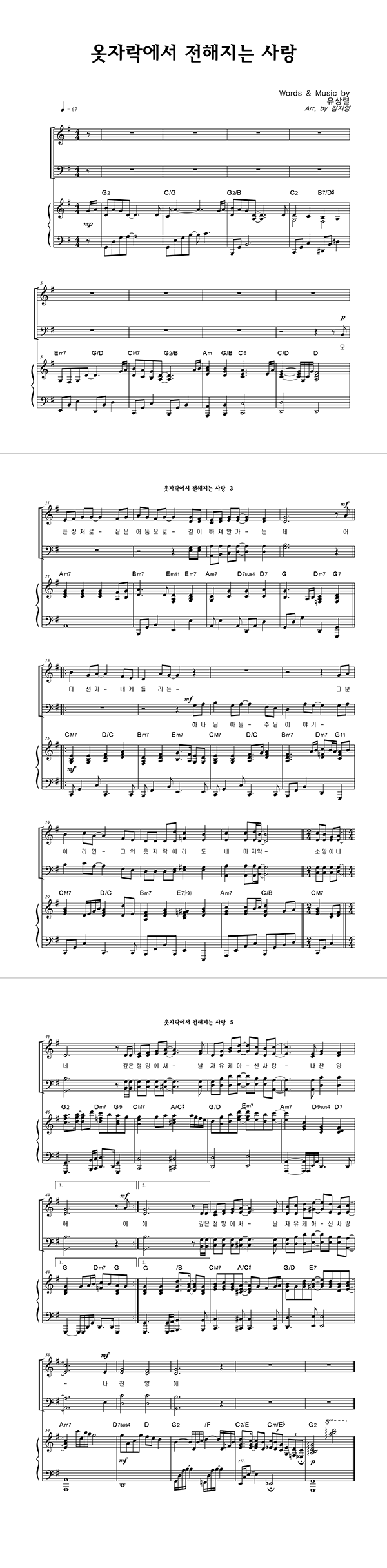 | 옷자락에서 전해지는 사랑 | 성가 3부 + 피아노 반주 |
