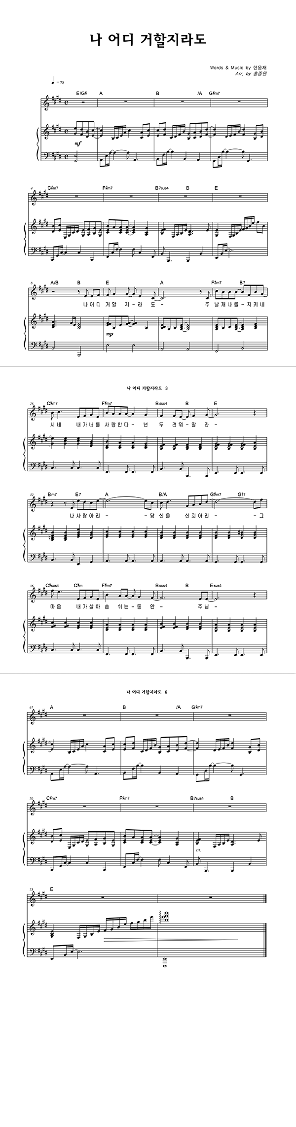 | 나 어디 거할지라도 | 성가 4부 + 피아노 반주 |