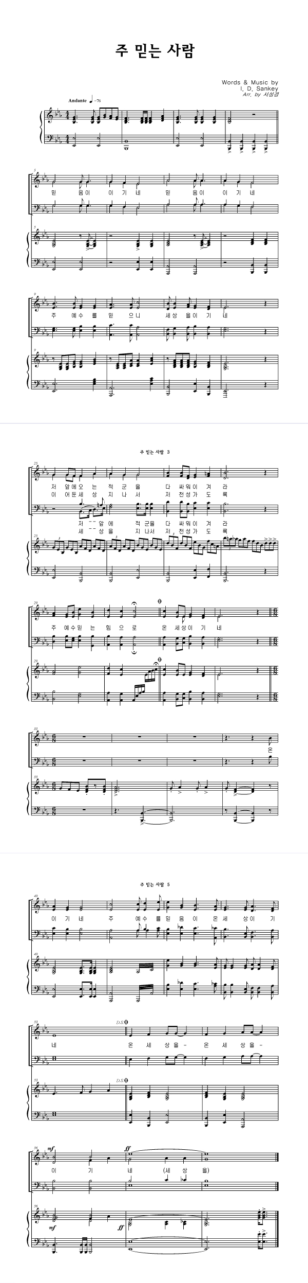 '주 믿는 사람 일어나' 의 다른 악보형식