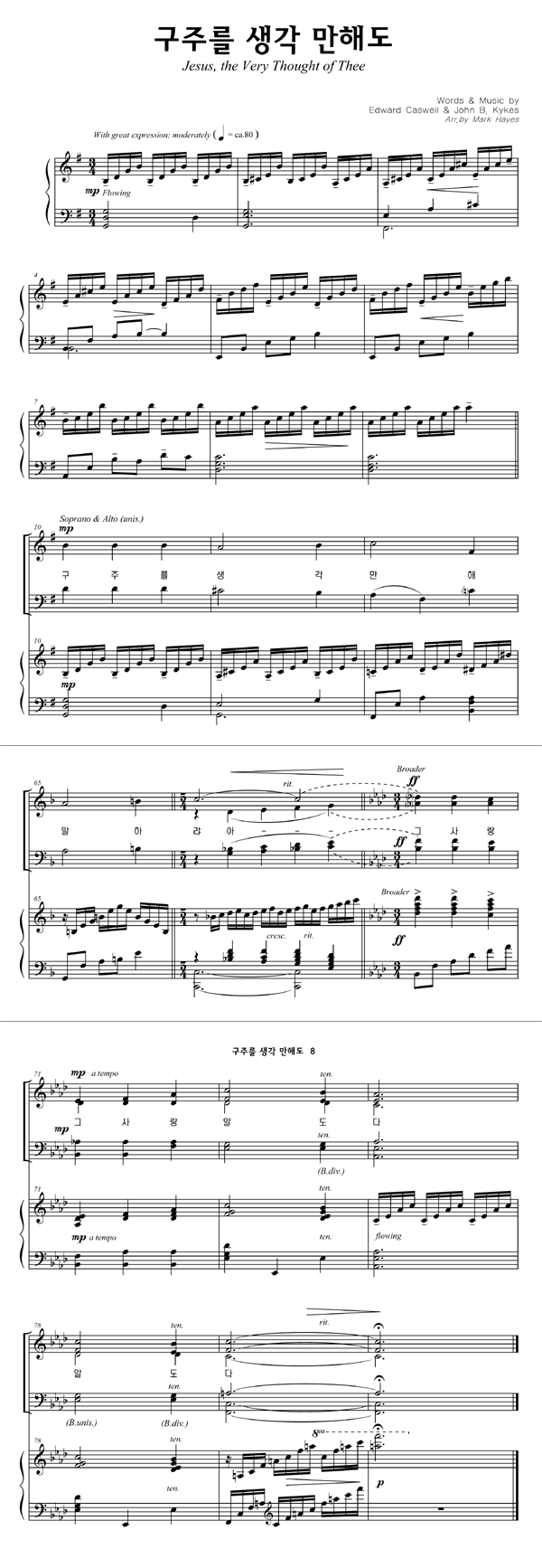 | 구주를 생각만 해도 | 성가 4부 + 피아노 반주 |