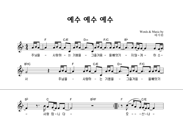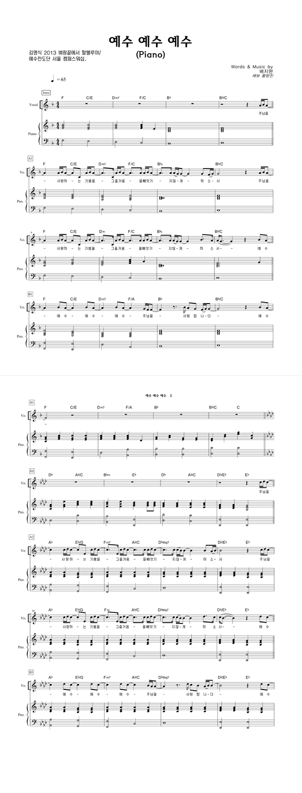 | 예수 예수 예수 | 성가 2부 + 피아노 반주 |