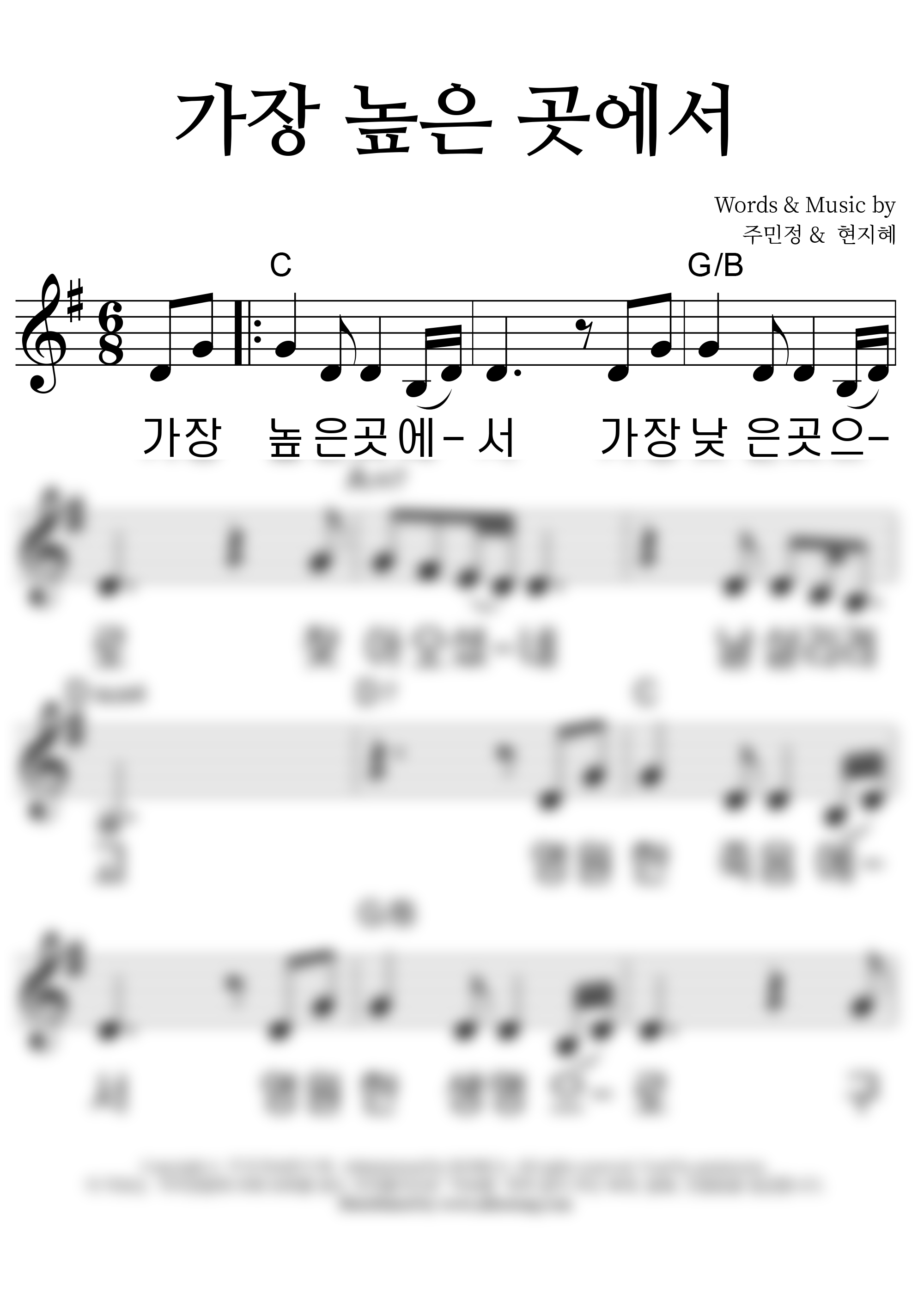 | 가장 높은 곳에서 | 성가 4부 + 피아노 반주 |