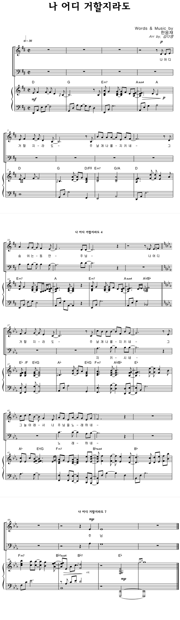 | 나 어디 거할지라도 | 성가 4부 + 피아노 반주 |