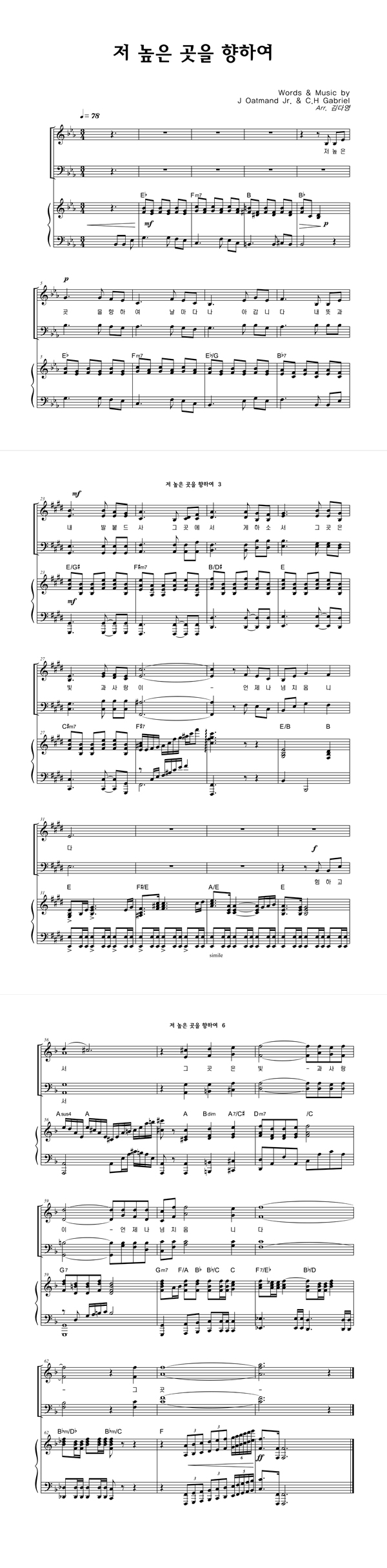 | 저 높은 곳을 향하여 (찬송가 491장) | 성가 2부 + 피아노 반주 |