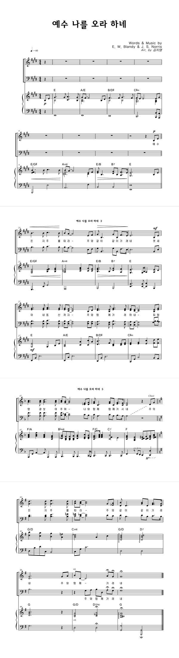 | 예수 나를 오라 하네 | 성가 4부 + 피아노 반주 |
