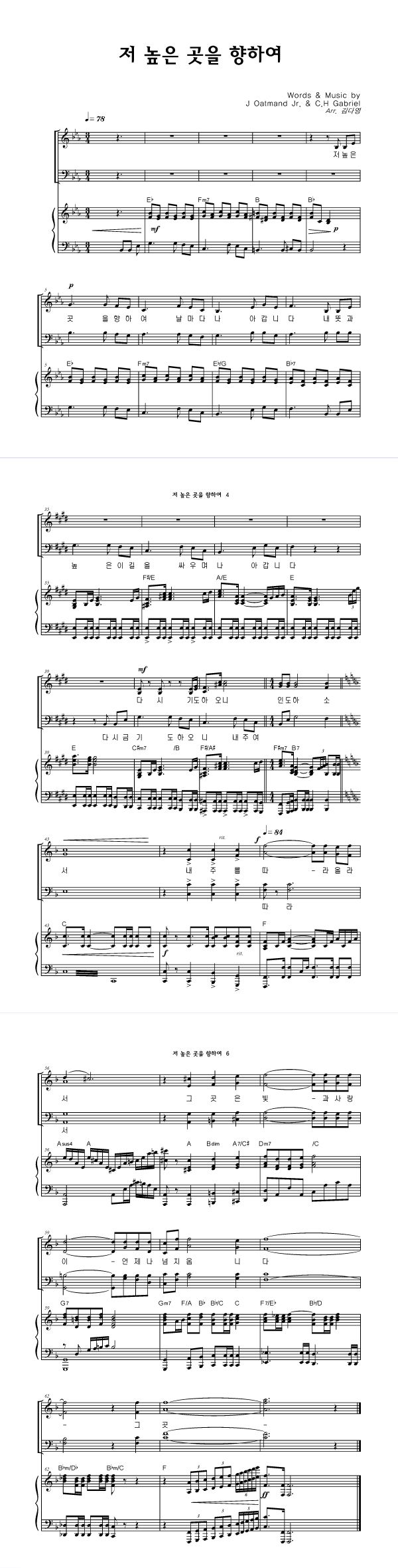 | 저 높은 곳을 향하여 (찬송가 491장) | 성가 3부 + 피아노 반주 |