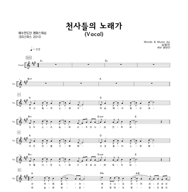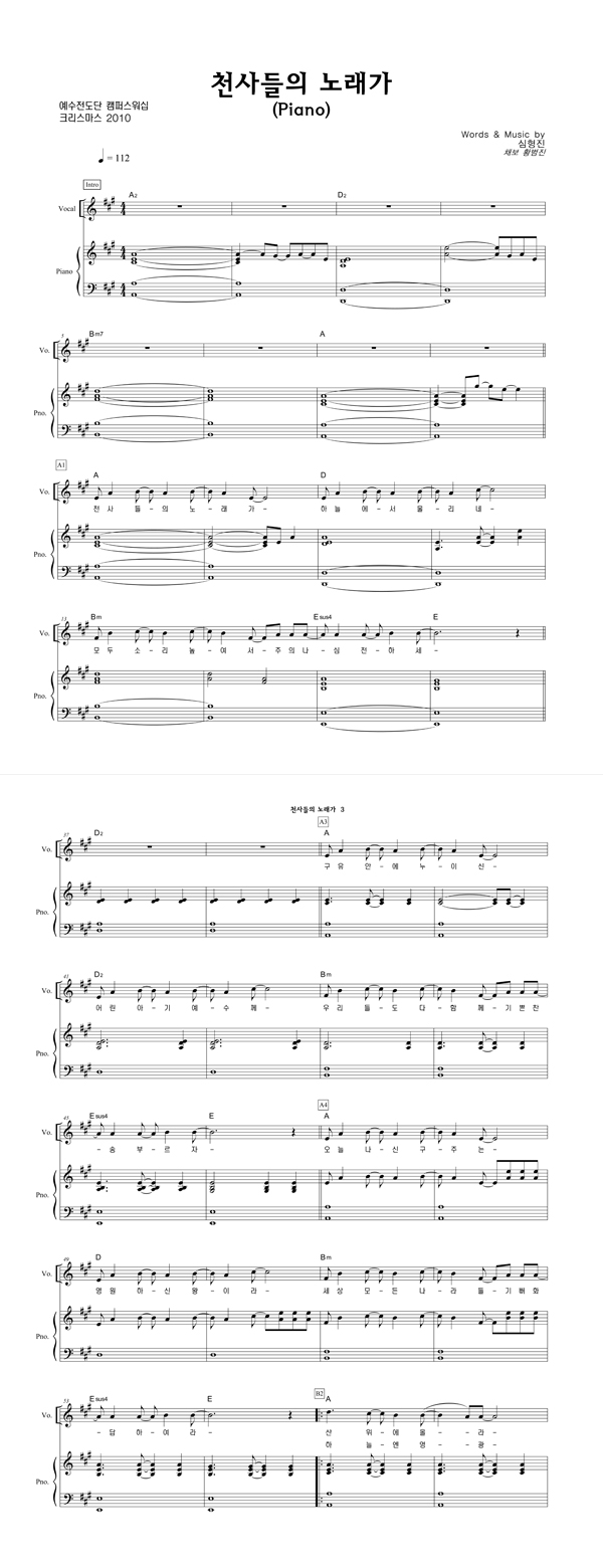 | 천사들의 노래가 | 성가 4부 + 피아노 반주 |