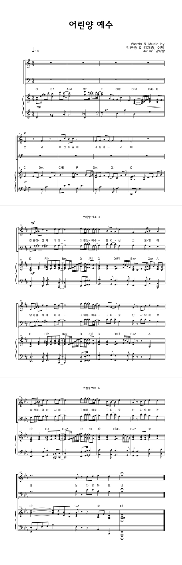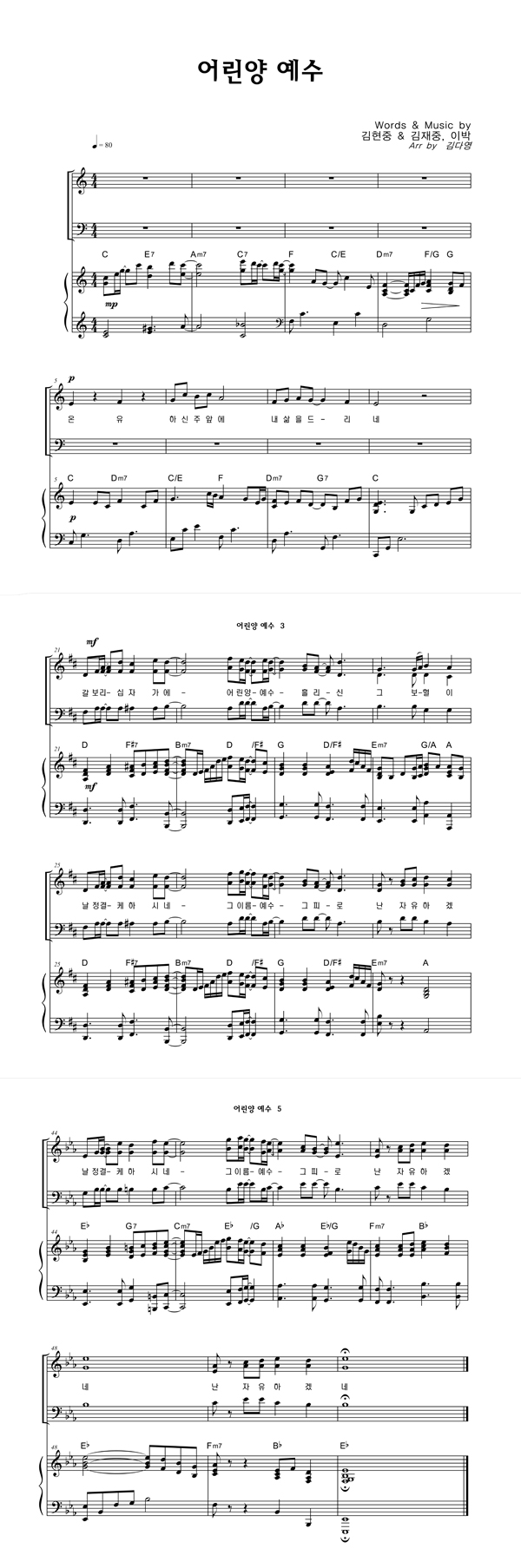 | 어린 양 예수 | 성가 3부 + 피아노 반주 |