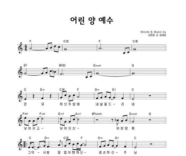 | 어린 양 예수 | 성가 2부 + 피아노 반주 |