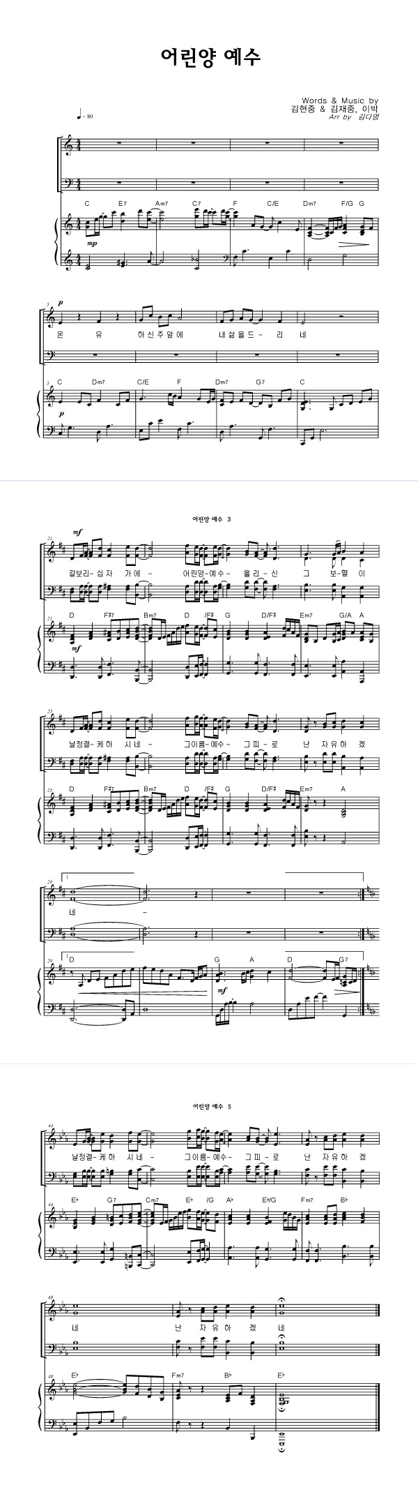 '어린 양 예수' 의 다른 악보형식