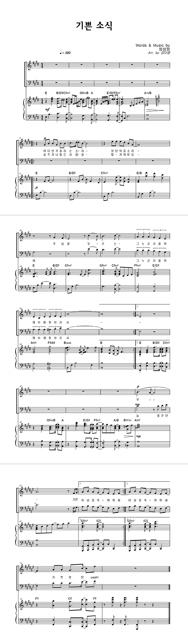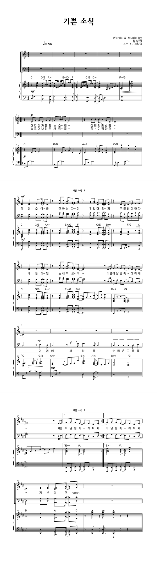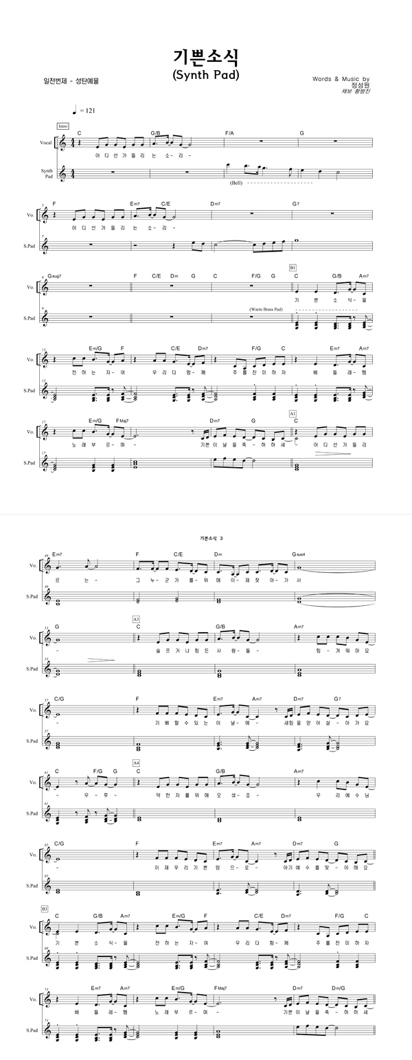 | 기쁜 소식 | 성가 3부 + 피아노 반주 |