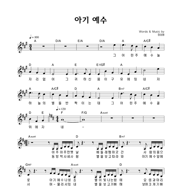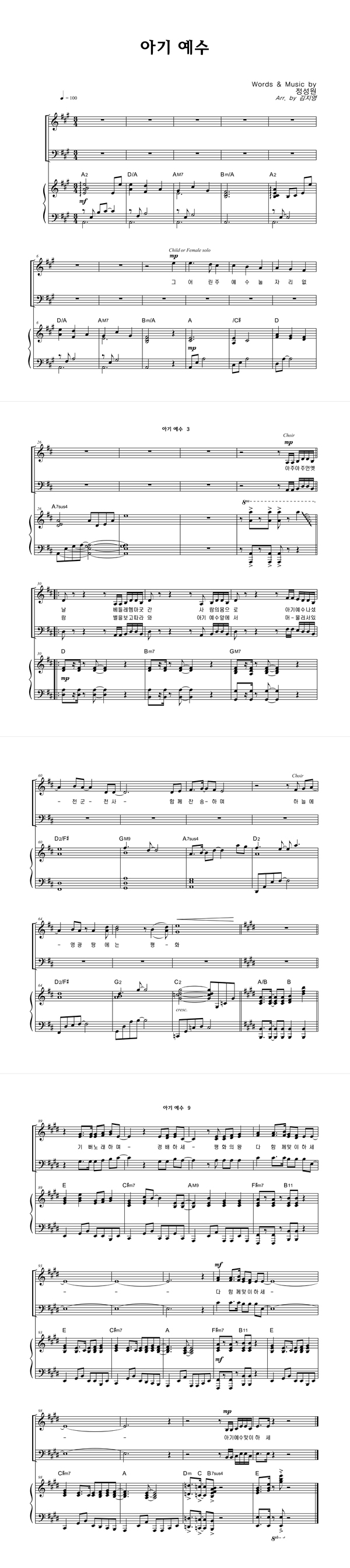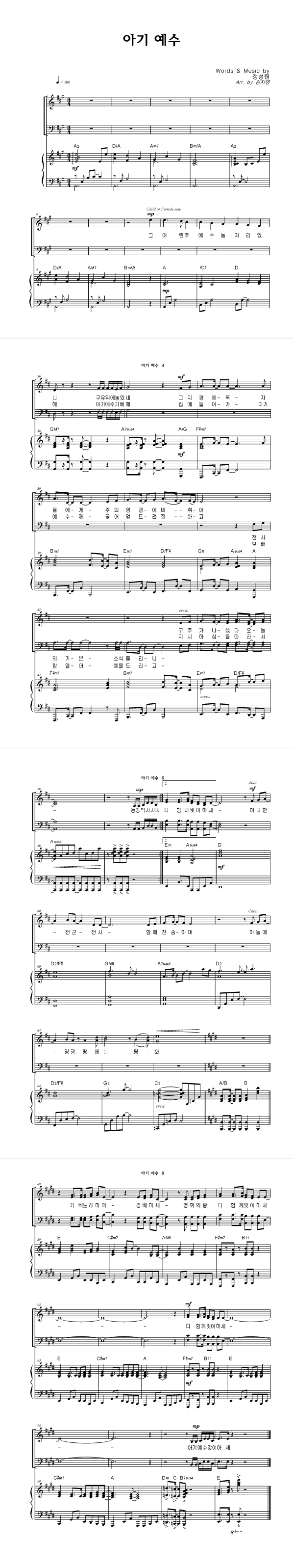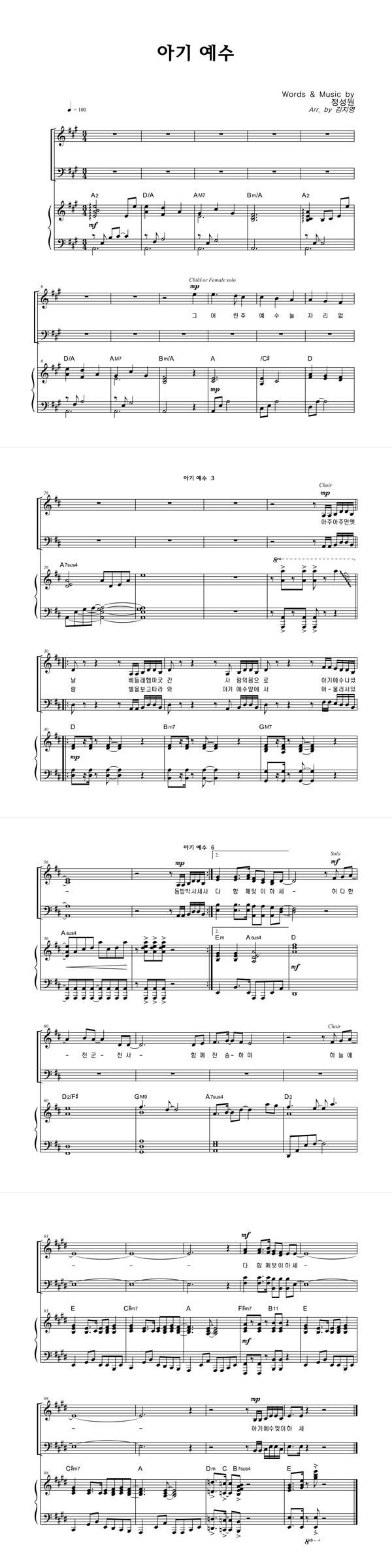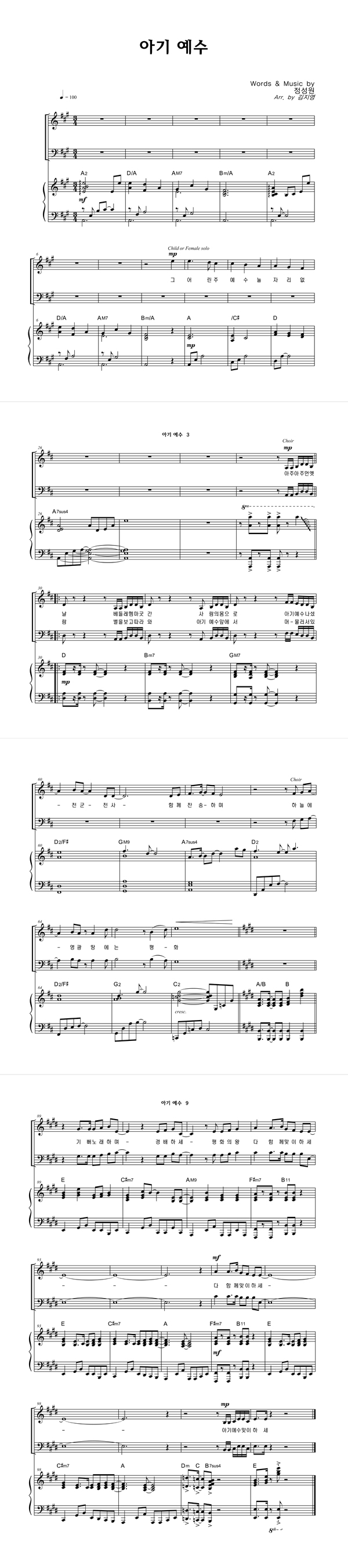 | 아기 예수 | 성가 4부 + 피아노 반주 |