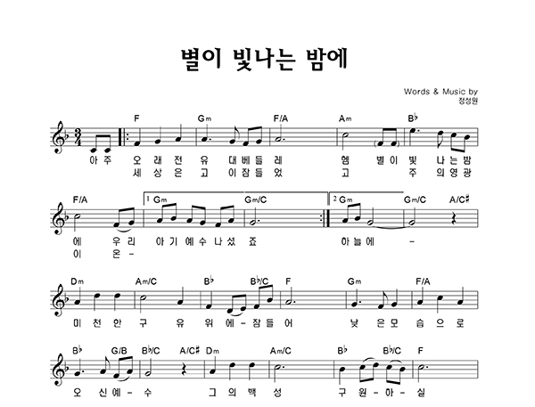 | 아기 예수 | 성가 2부 + 피아노 반주 |