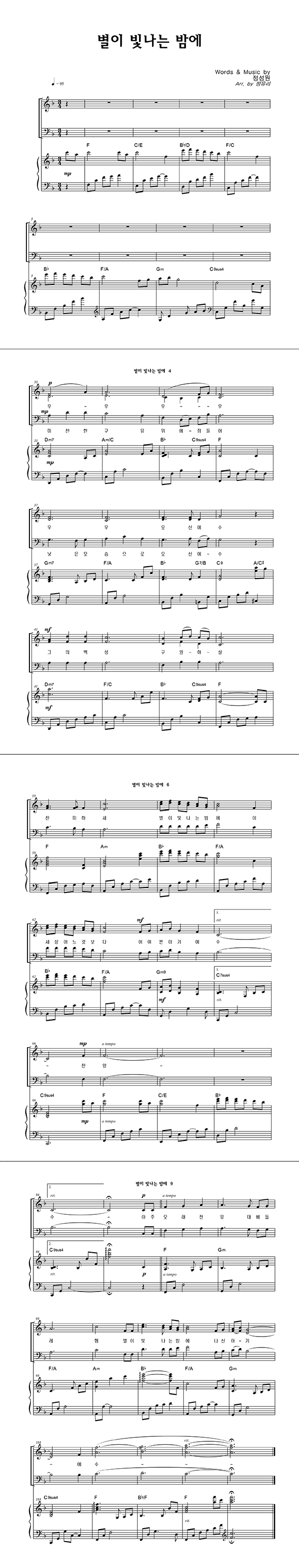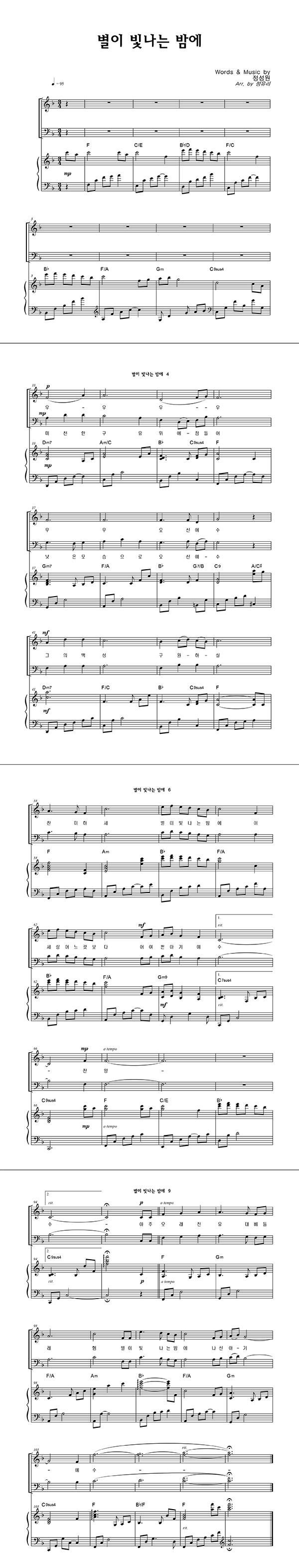 | 별이 빛나는 밤에 | 성가 4부 + 피아노 반주 |