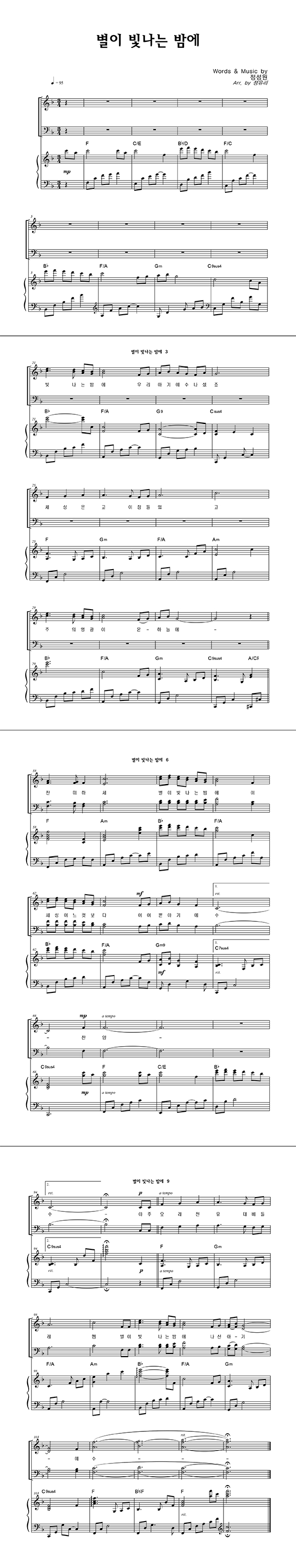 | 별이 빛나는 밤에 | 성가 3부 + 피아노 반주 |