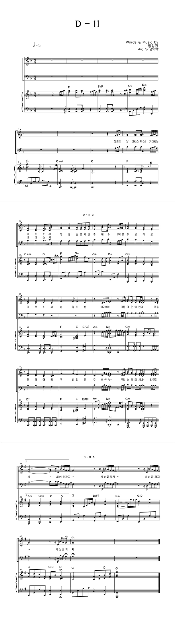 | D-11 | 성가 3부 + 피아노 반주 |