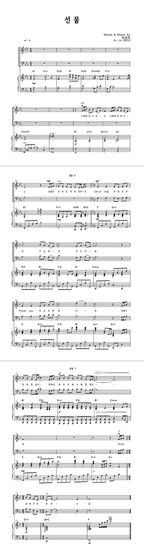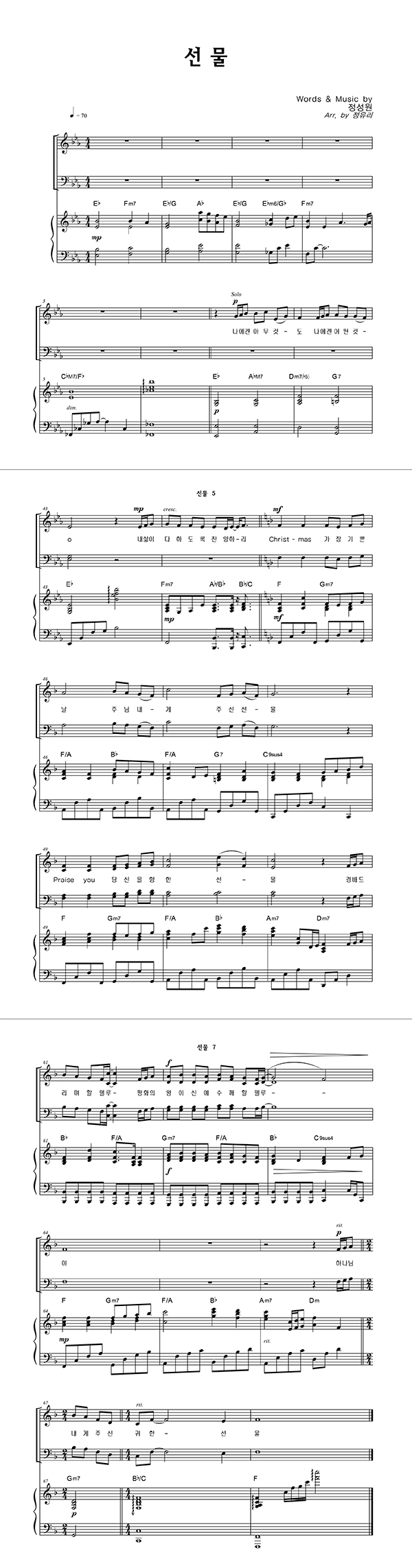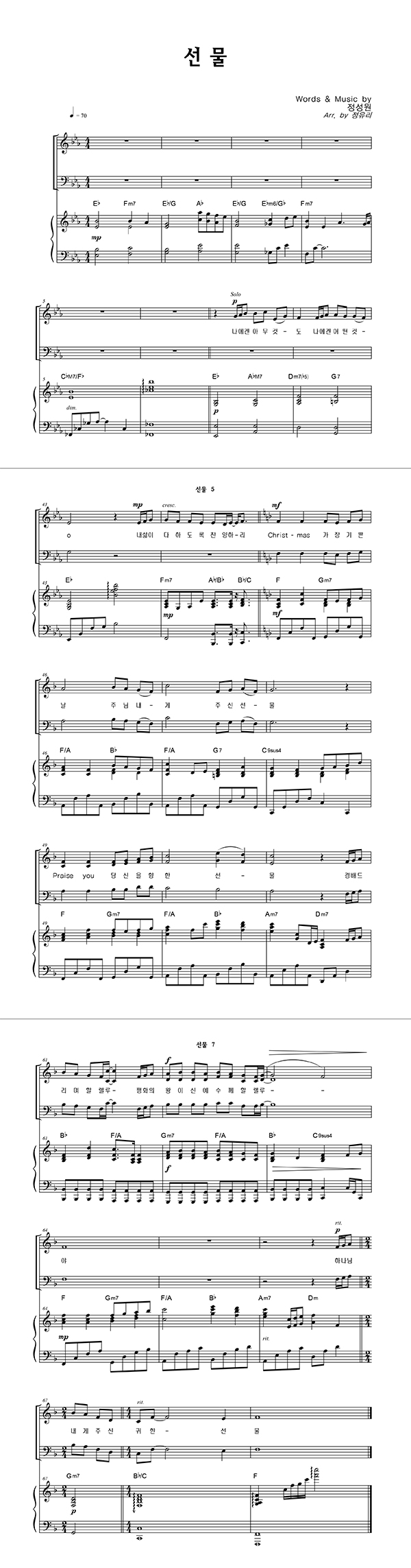 | 선물 | 성가 2부 + 피아노 반주 |