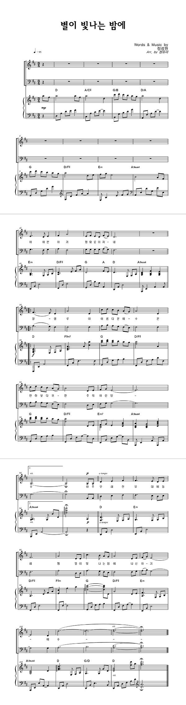 | 별이 빛나는 밤에 | 성가 2부 + 피아노 반주 |
