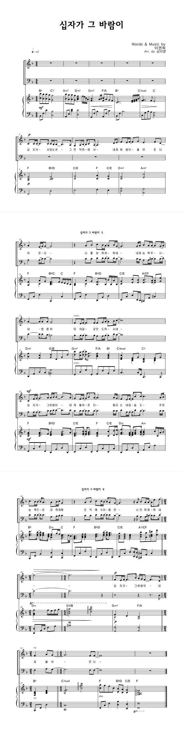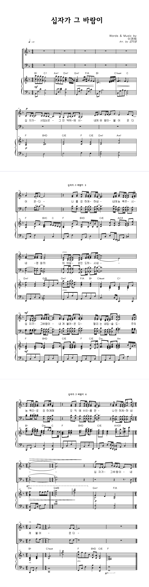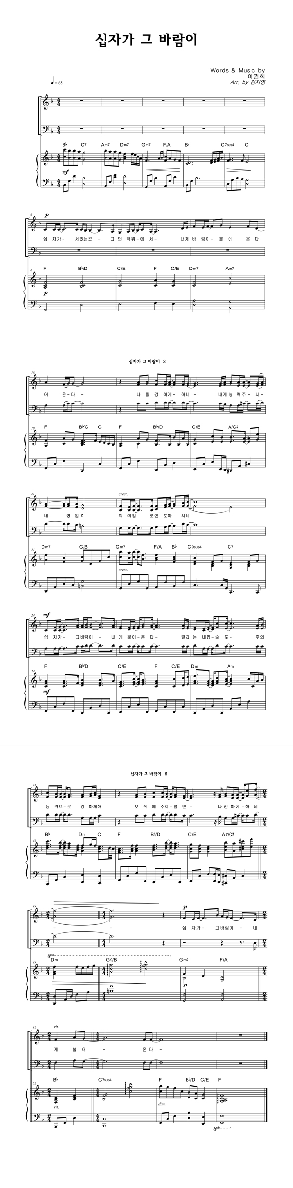 | 십자가 그 바람이 | 성가 3부 + 피아노 반주 |