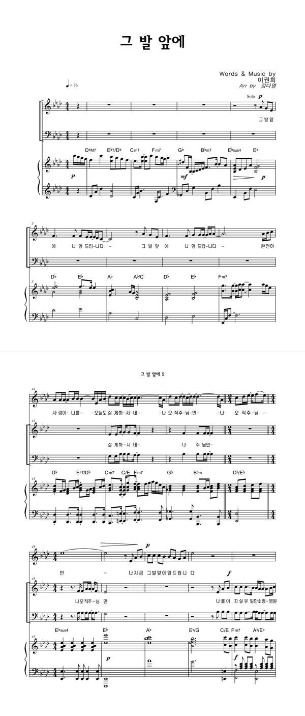 | 그 발 앞에 | 성가 2부 + 피아노 반주 |