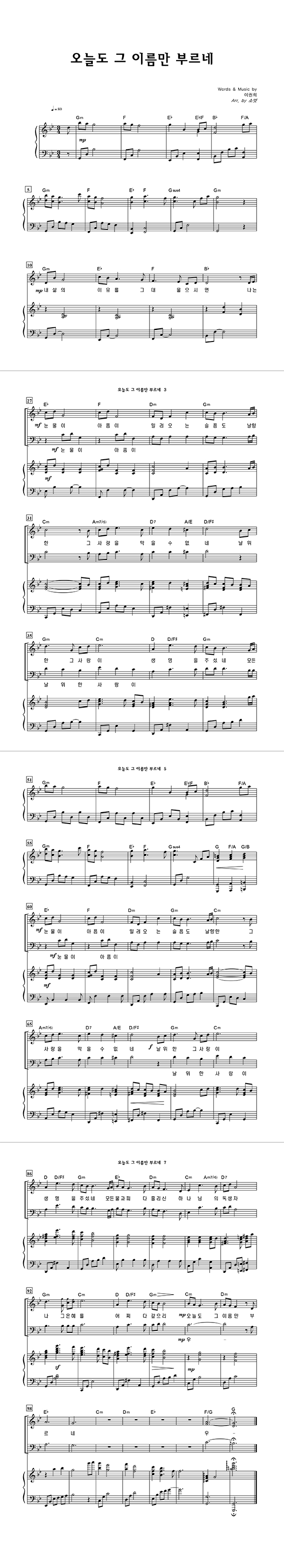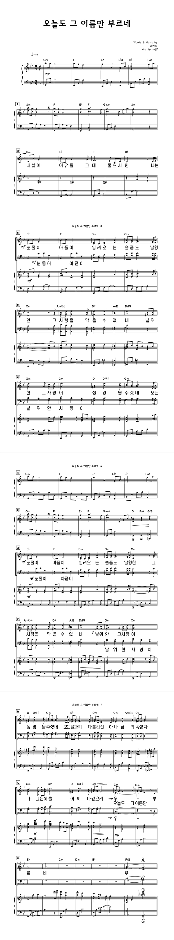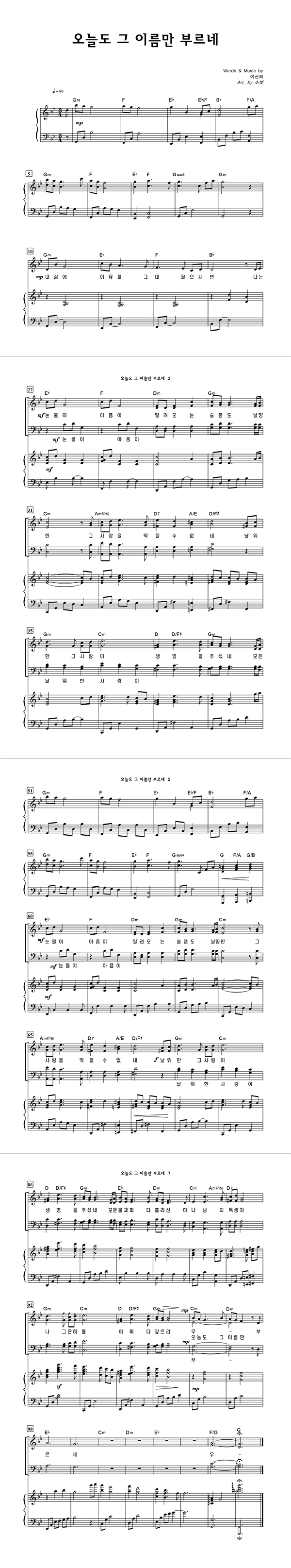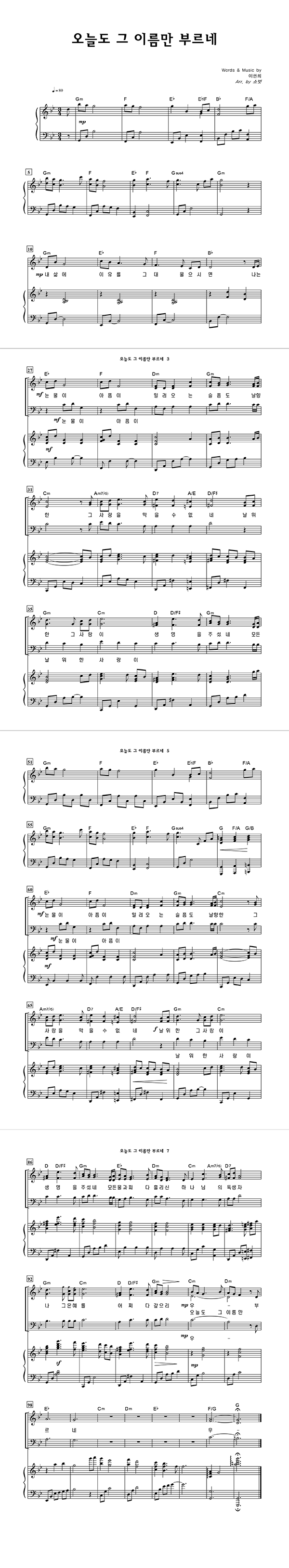 | 오늘도 그 이름만 부르네 | 성가 3부 + 피아노 반주 |