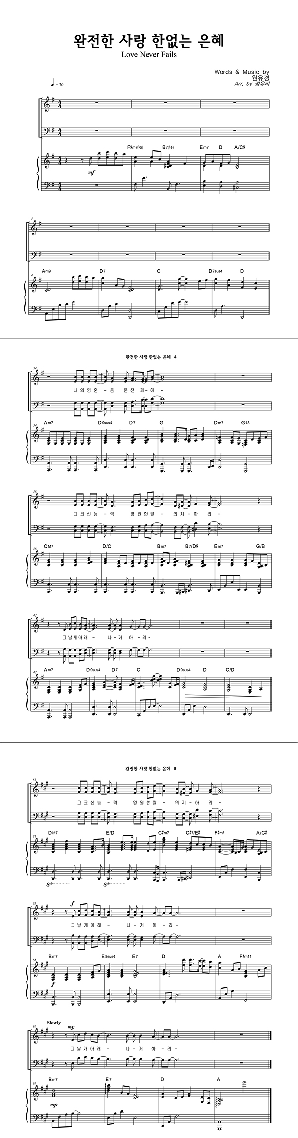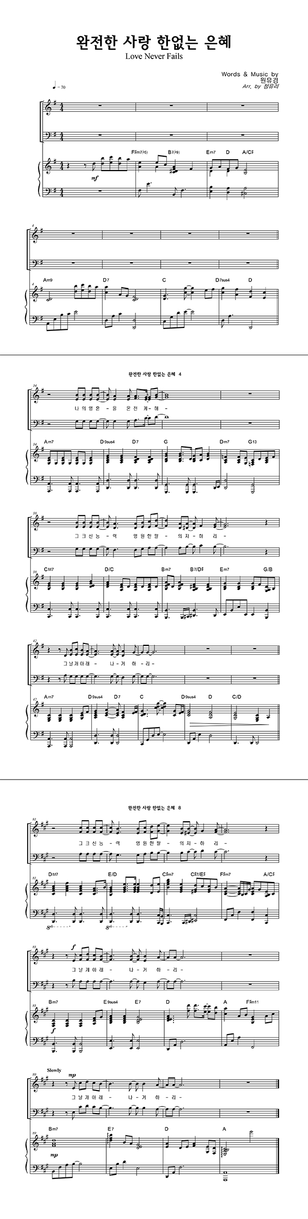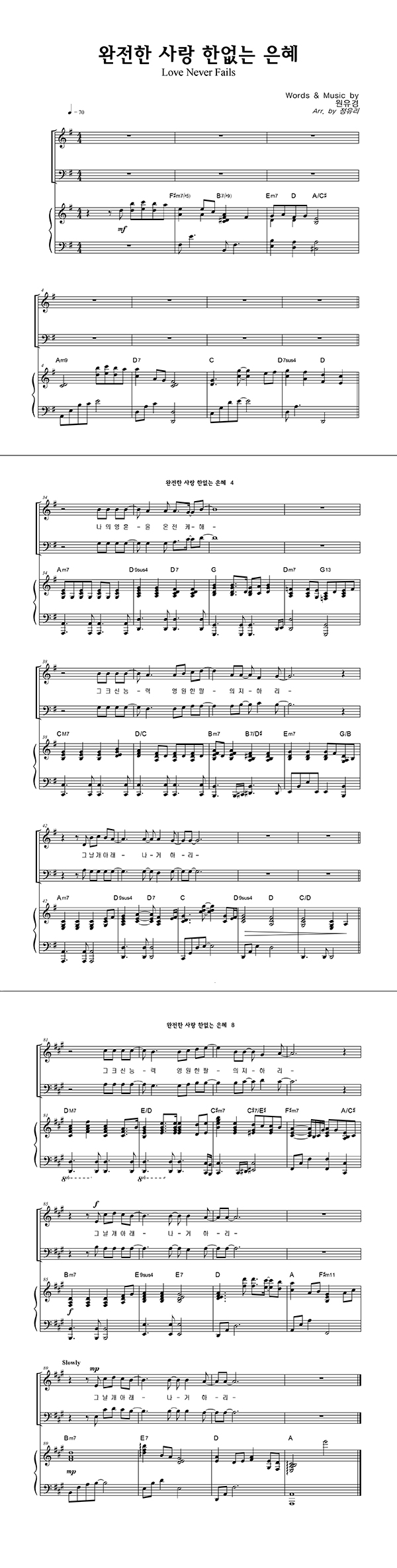 | 완전한 사랑 한없는 | 성가 3부 + 피아노 반주 |