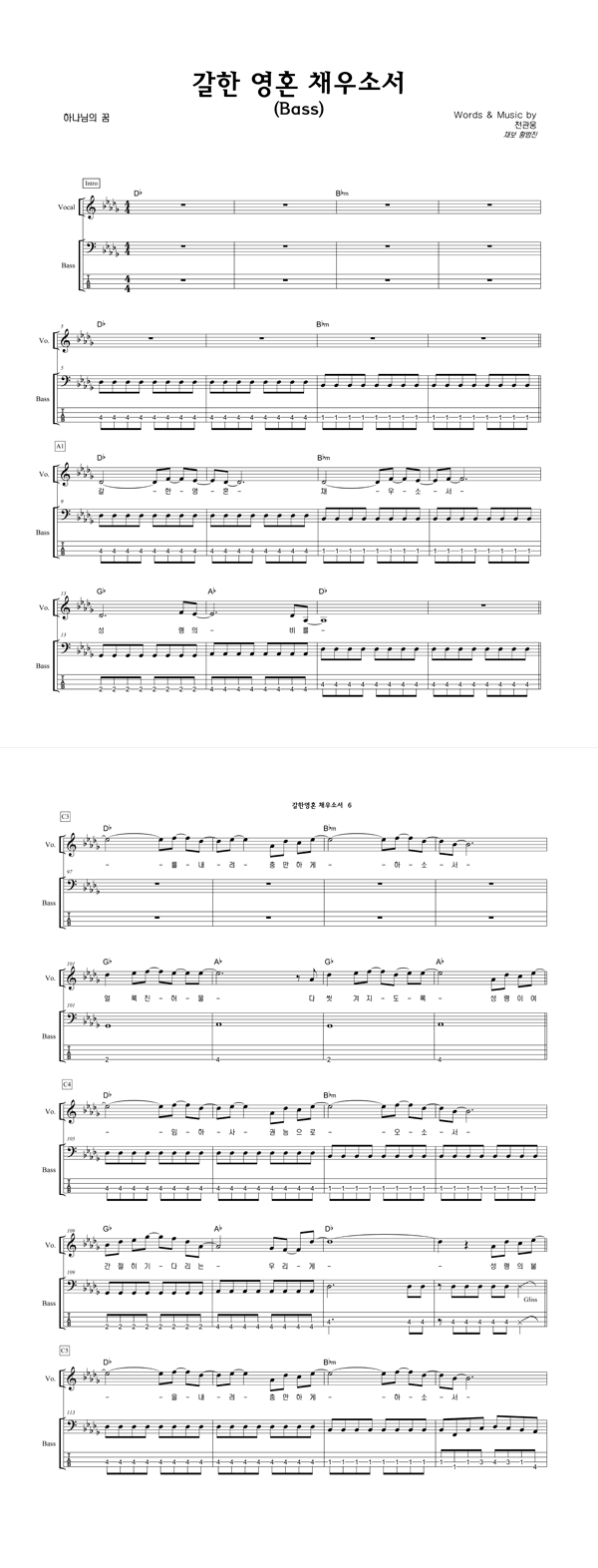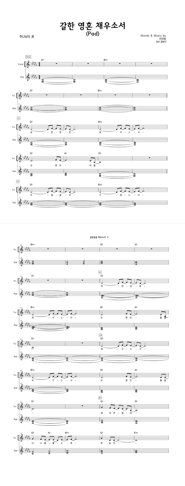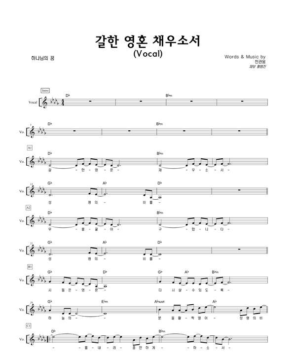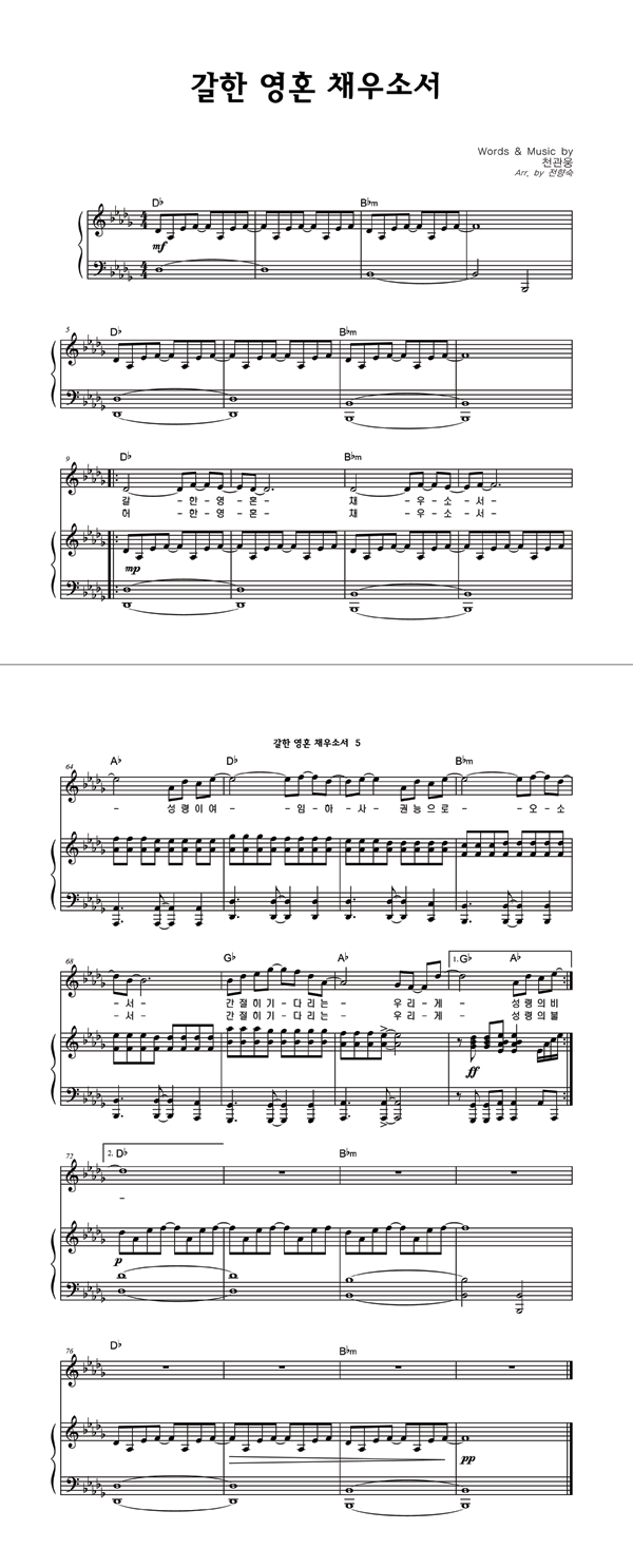 | 갈한 영혼 채우소서 | 성가 2부 + 피아노 반주 |