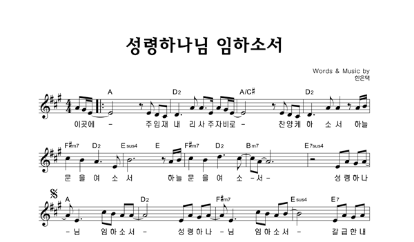 | 성령하나님 임하소서 | 성가 2부 + 피아노 반주 |