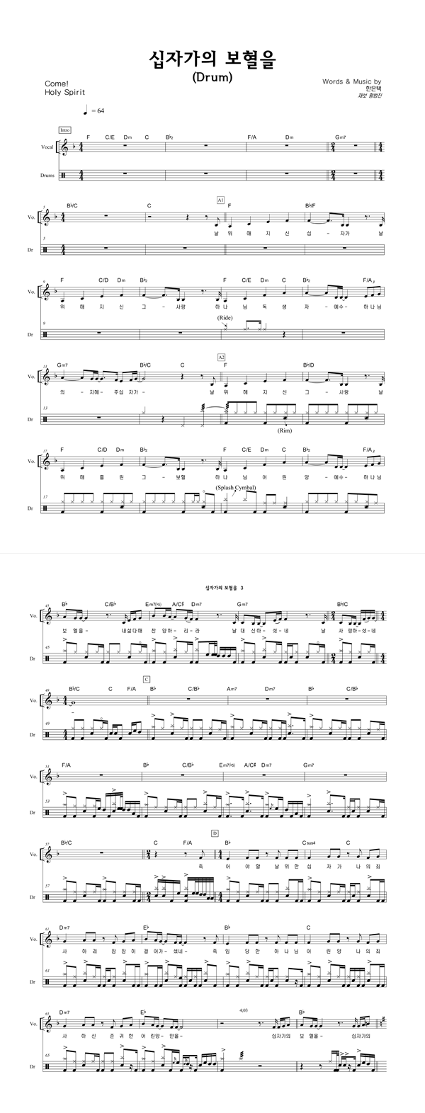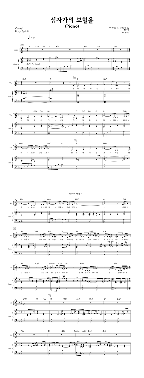 | 성령하나님 임하소서 | 성가 3부 + 피아노 반주 |