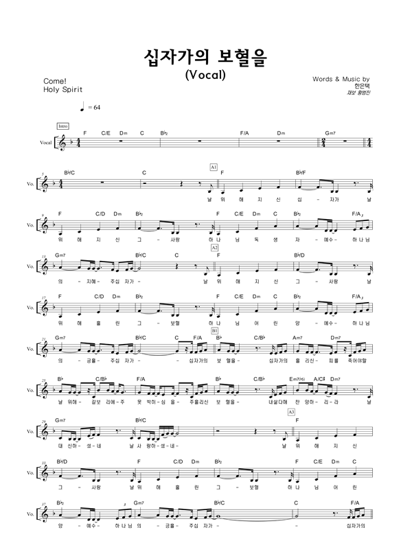 '십자가의 보혈을' 의 다른 악보형식