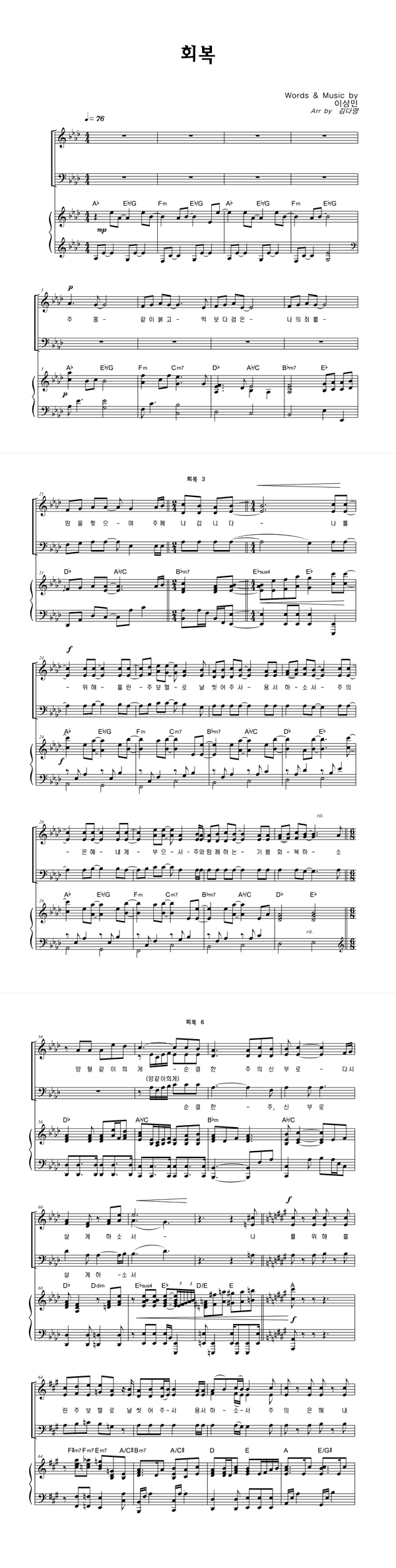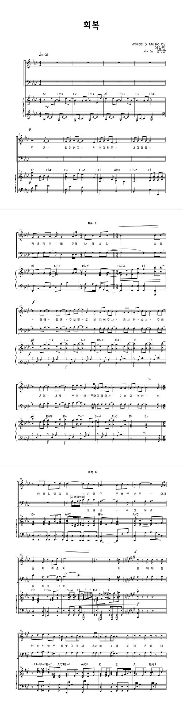 | 회복 | 성가 3부 + 피아노 반주 |