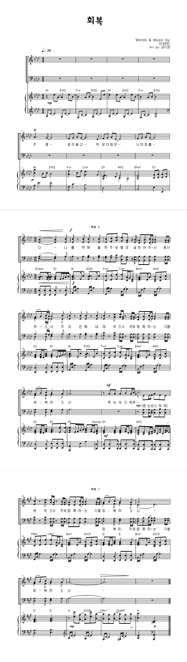 | 회복 | 성가 2부 + 피아노 반주 |