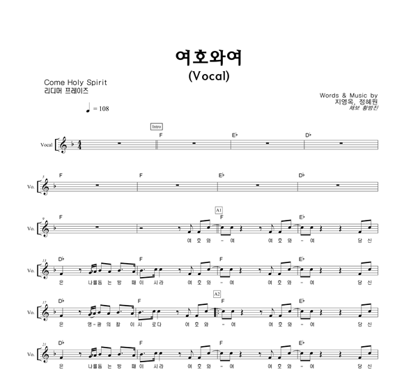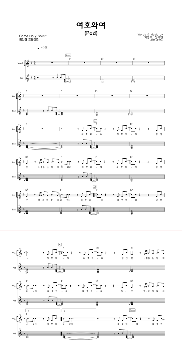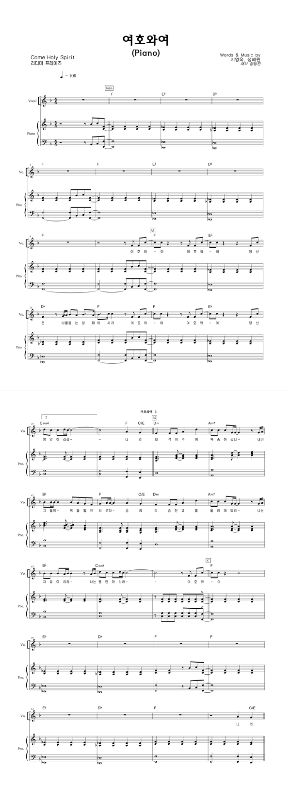 | 성령하나님 임하소서 | 성가 2부 + 피아노 반주 |