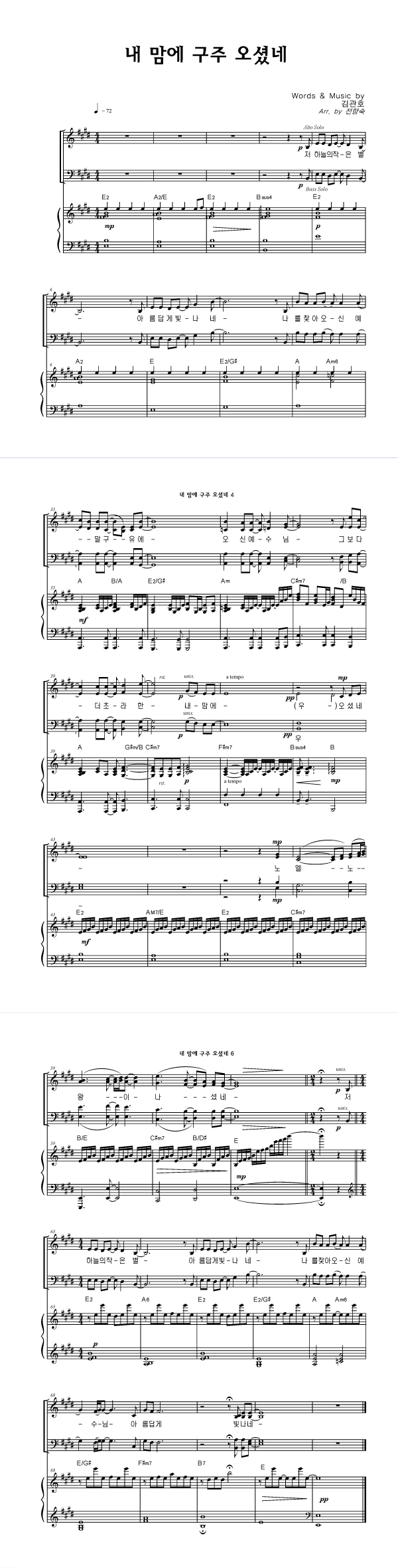 '내 맘에 구주 오셨네' 의 다른 악보형식