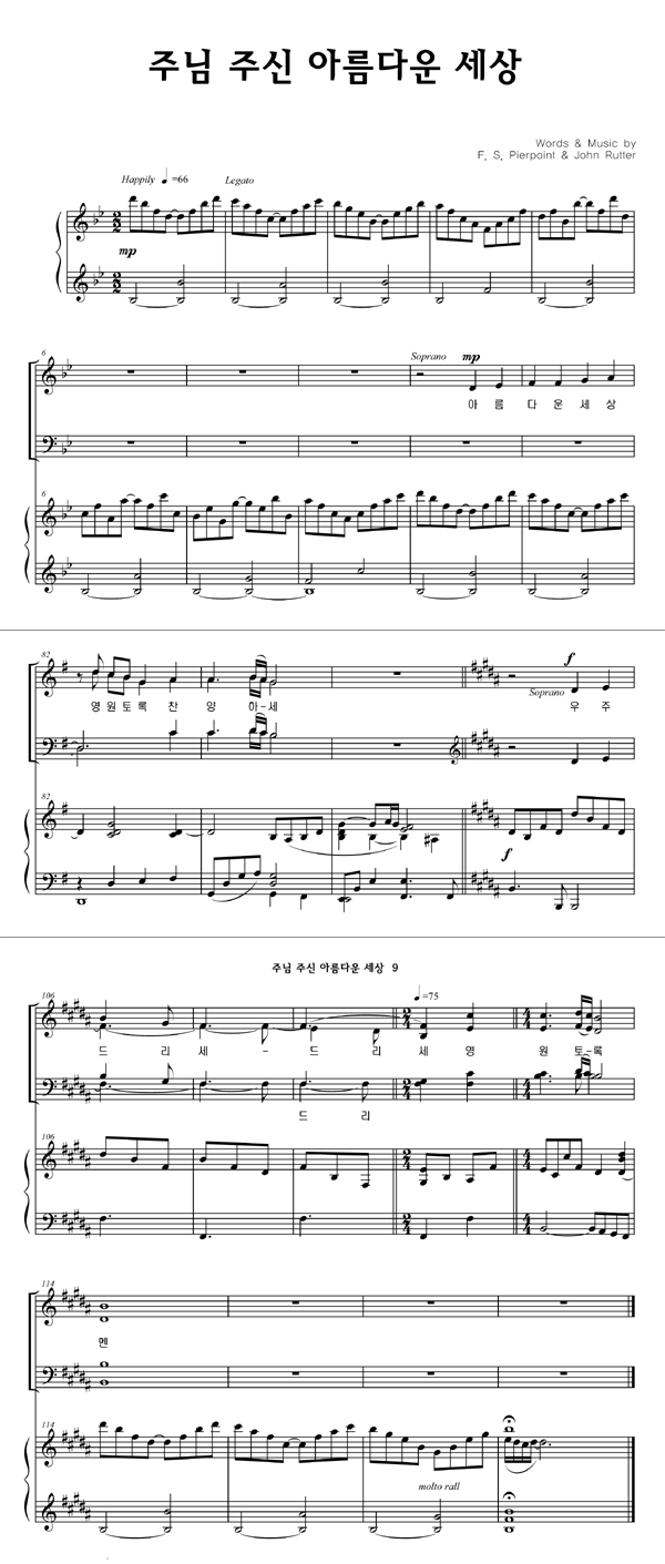 | 주님 주신 아름다운 세상 | 성가 4부 + 피아노 반주 |