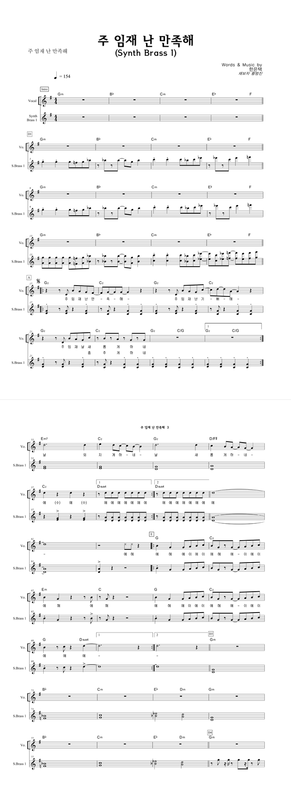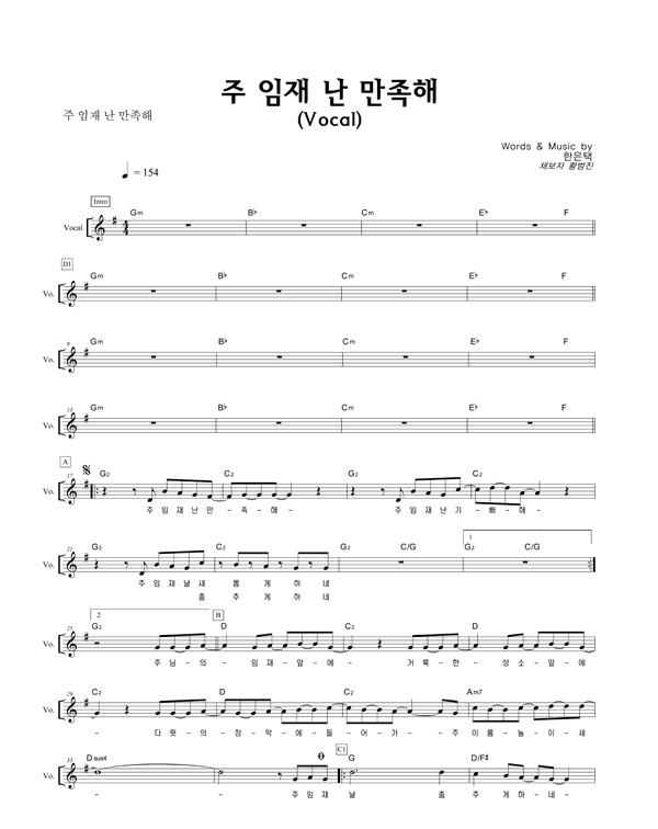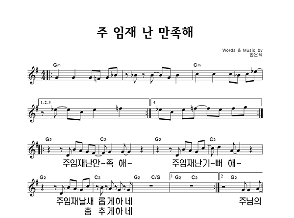 '주 임재 난 만족해' 의 다른 악보형식