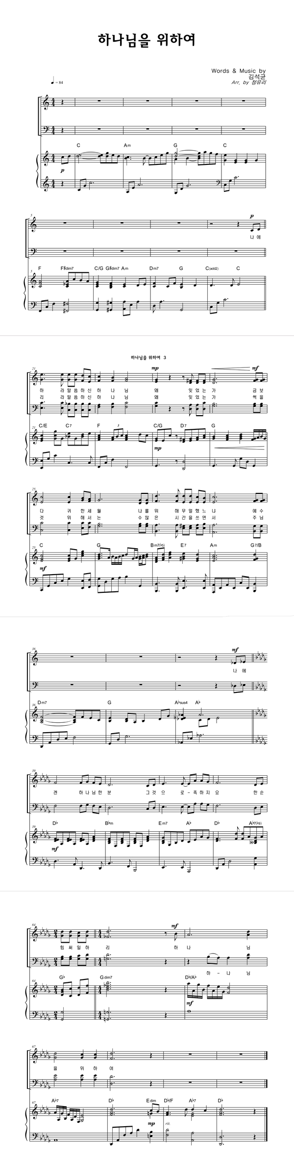 | 하나님을 위하여 | 성가 2부 + 피아노 반주 |