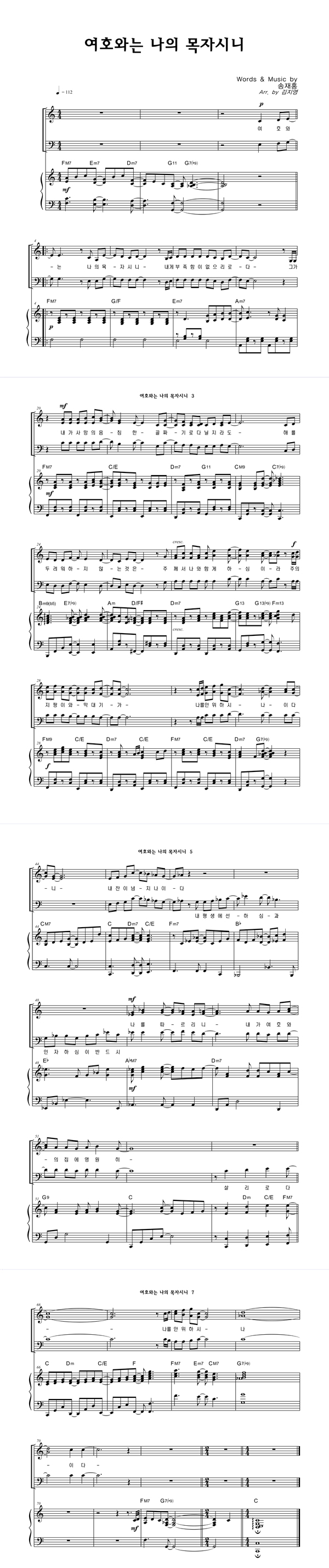 | 여호와는 나의 목자시니 | 성가 2부 + 피아노 반주 |