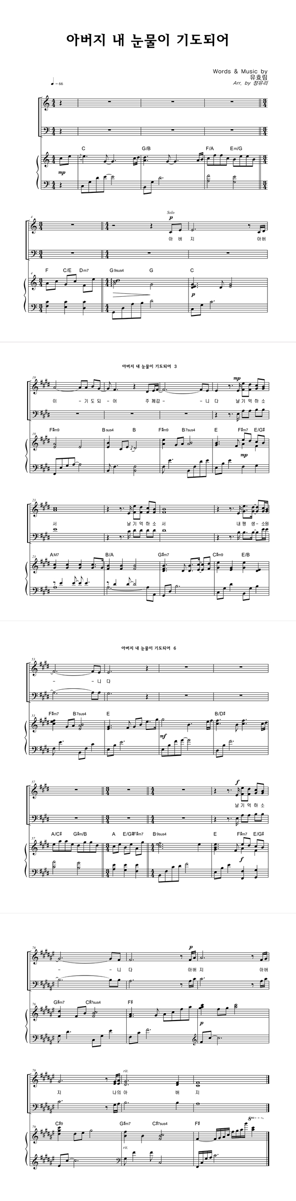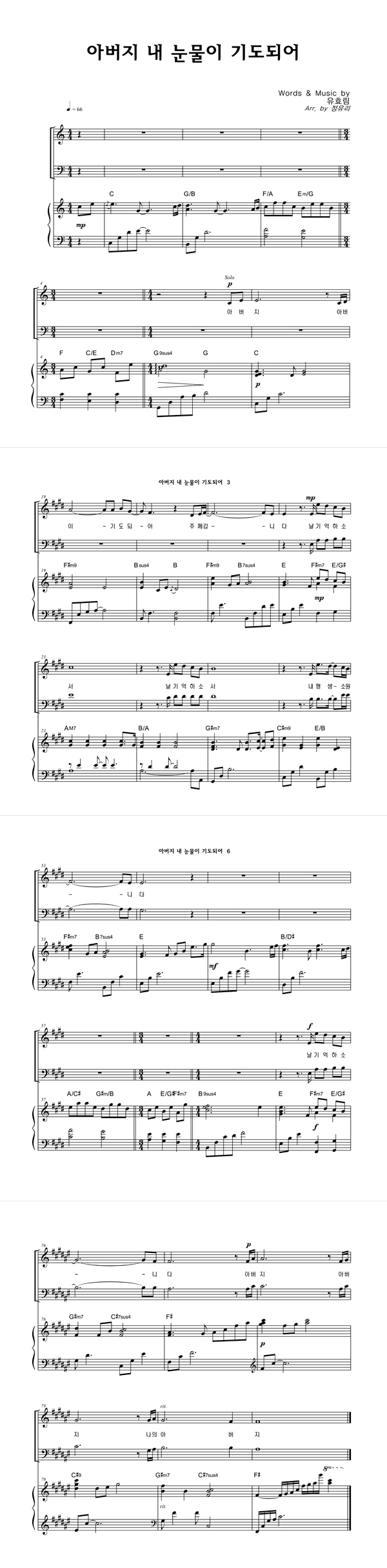 | 아버지 내 눈물이 기도되어 | 성가 3부 + 피아노 반주 |