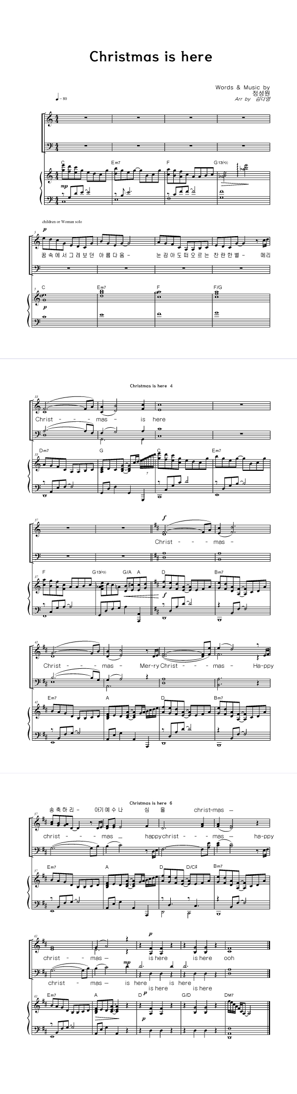| Christmas is Here | 성가 3부 + 피아노 반주 |