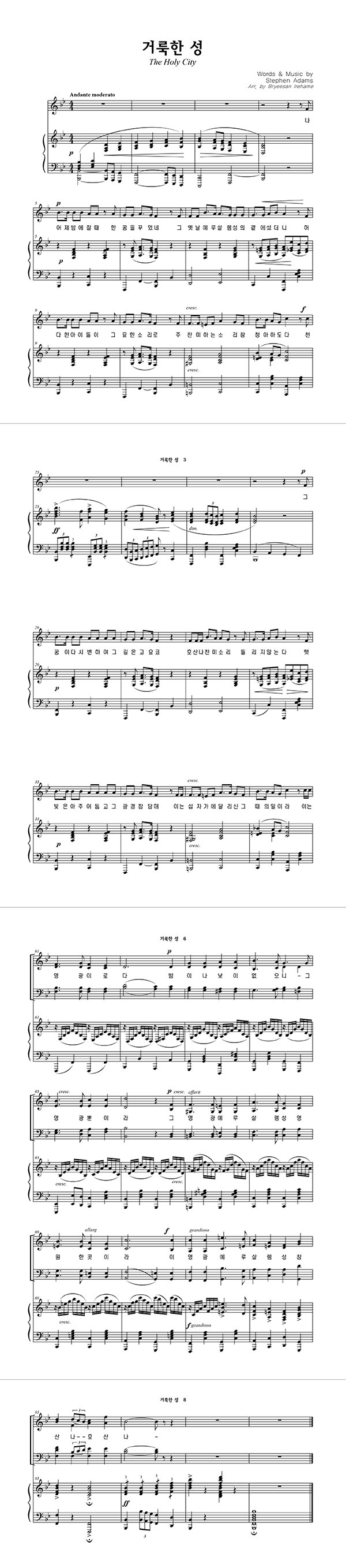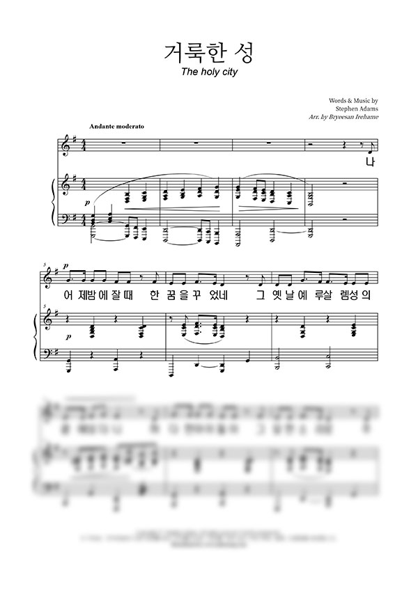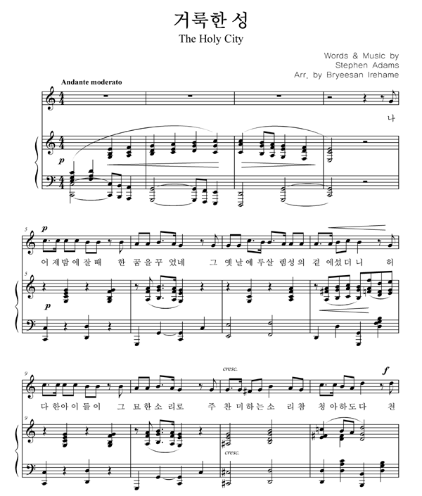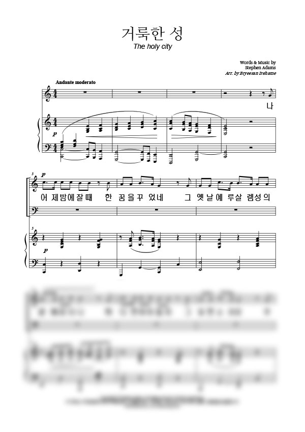 | 거룩한 성 | 성가 4부 + 피아노 반주 |