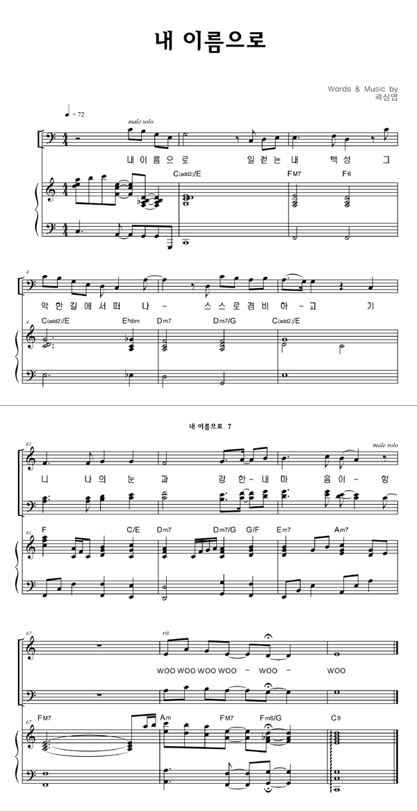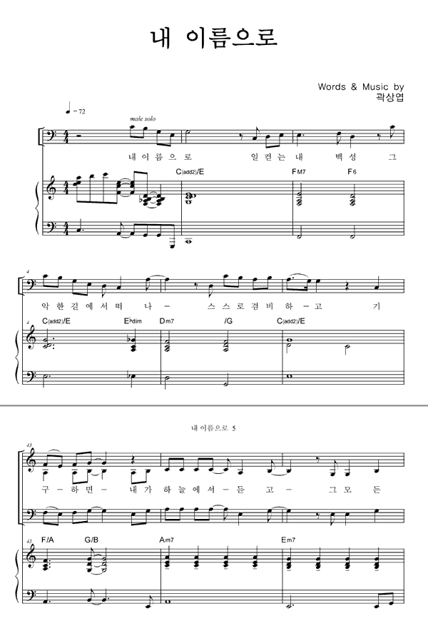 | 내 이름으로 | 성가 3부 + 피아노 반주 |