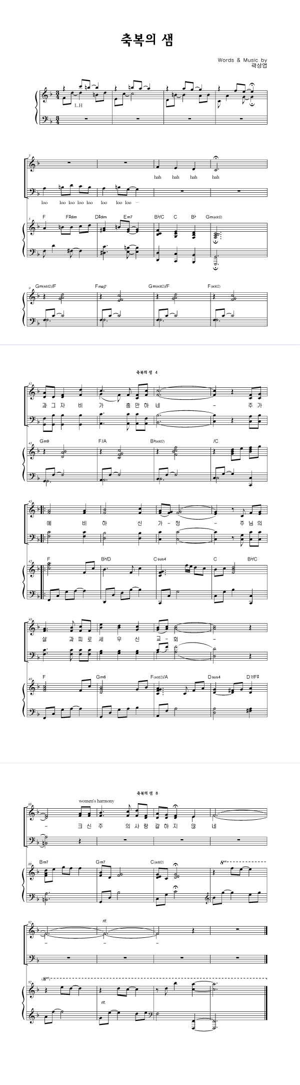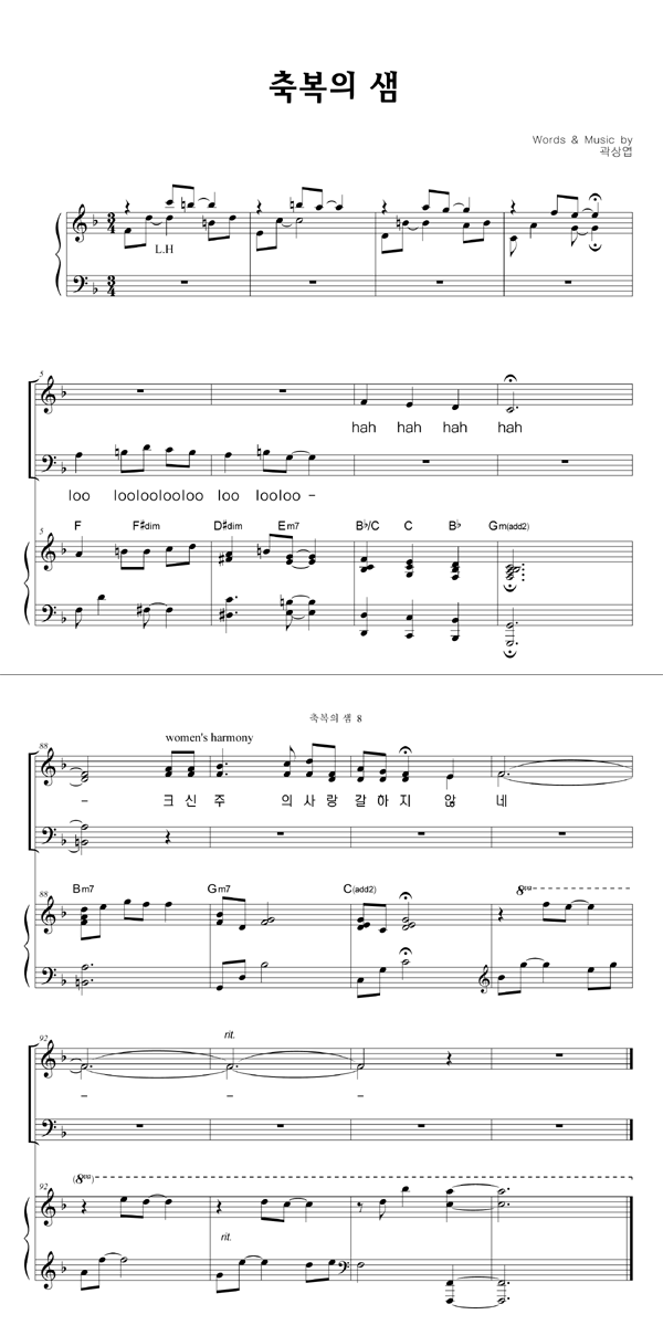 | 축복의 샘 | 성가 4부 + 피아노 반주 |